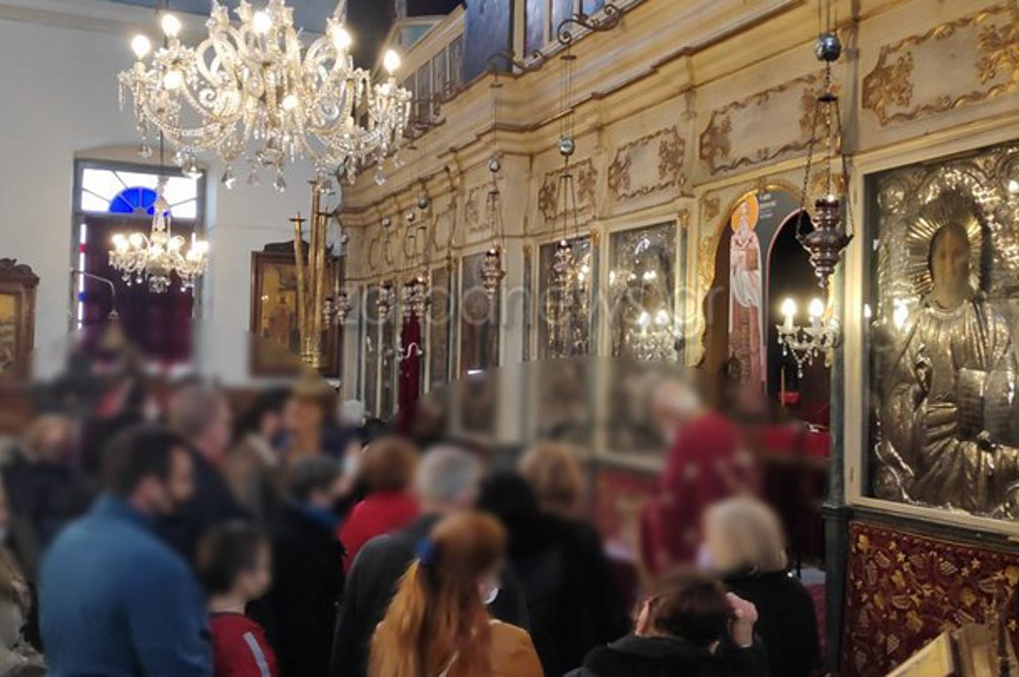 Λίγη ώρα όμως αργότερα, τα πράγματα άλλαξαν καθώς πιστοί που θέλησαν να παραλάβουν τον Αγιασμό άρχισαν να συνωστίζονται εντός του Ναού, με την τήρηση των μέτρων να πηγαίνει ουσιαστικά… περίπατο. Όπως φαίνεται στο βίντεο και τις φωτογραφίες του zarpanews.gr , ο κόσμος είναι αρκετός, χωρίς να κρατά αποστάσεις.