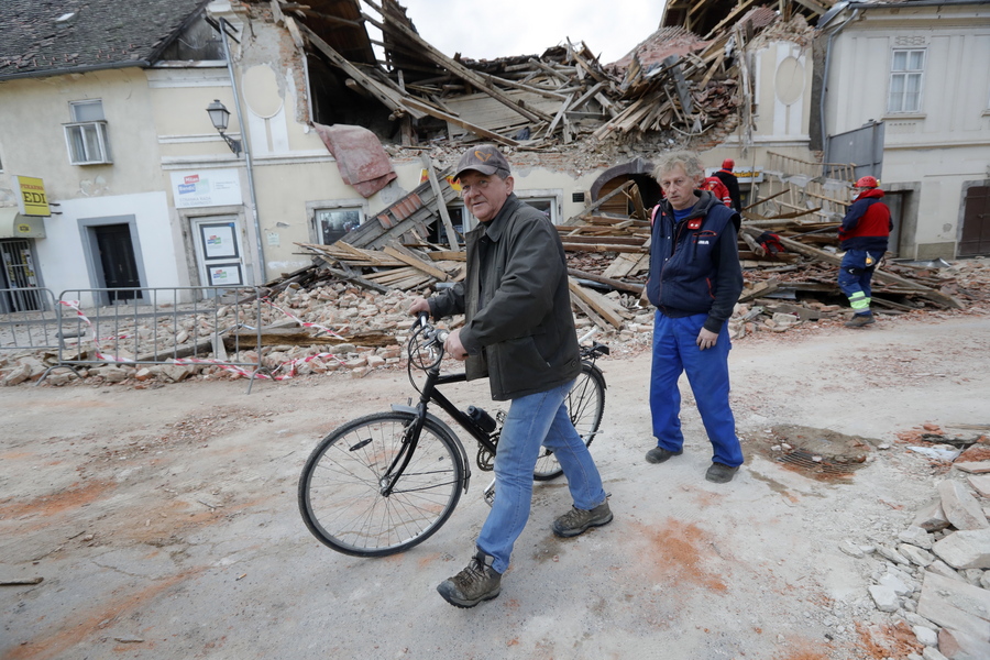 «Είναι καταστροφή», λέει ο Γιόσιπ Χόρβατ, 44 ετών, καλλιτέχνης που ζει στα προάστια της Πέτρινια. Όταν χτύπησε ο σεισμός, γύρω στο μεσημέρι, βρισκόταν στο κέντρο της πόλης για να βοηθήσει έναν φίλο του να επιδιορθώσουν την καμινάδα του σπιτιού του που έπαθε ζημιές από τον χθεσινό, μικρότερου μεγέθους σεισμό. «Κρατήθηκα από την υδρορροή και προσευχήθηκα στον Θεό να τελειώσει όσο το δυνατόν συντομότερα», είπε.Ο πρωθυπουργός της Κροατίας Αντρέι Πλένκοβιτς πήγε αμέσως στην πόλη αυτή, όπου στέγες έχουν καταρρεύσει και οι δρόμοι είναι γεμάτοι με τούβλα και μπάζα.