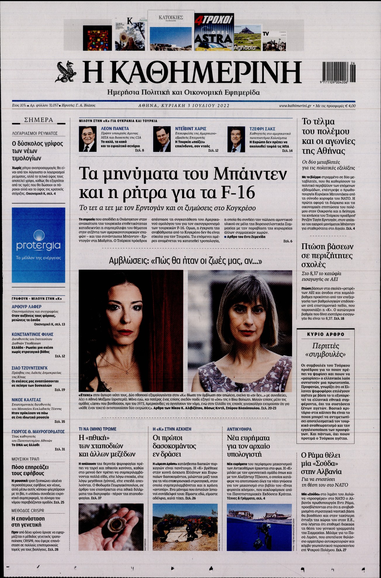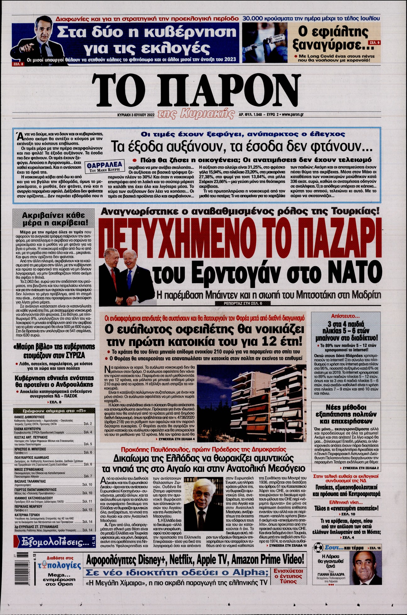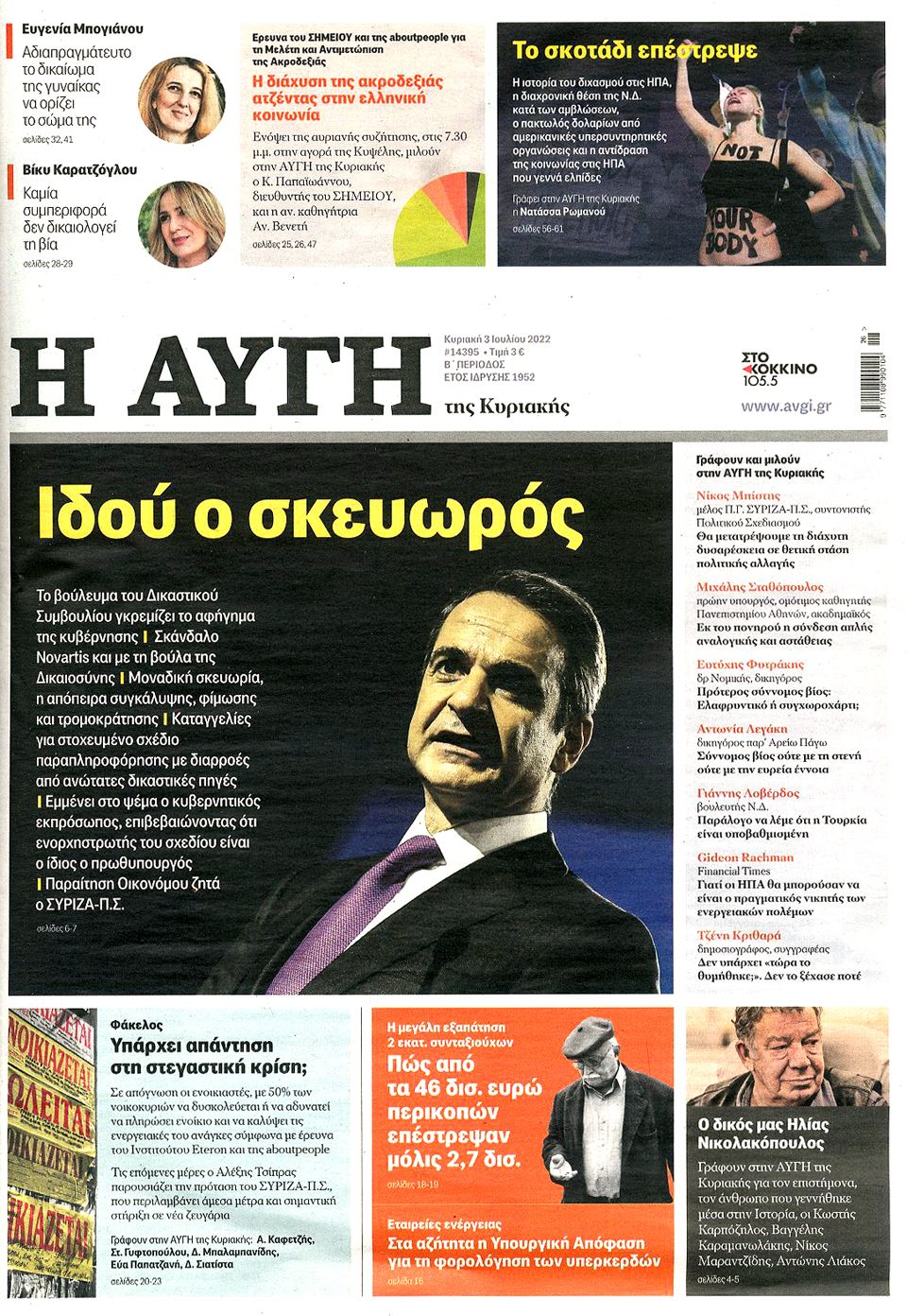 Δείτε τις Κυριακάτικες εφημερίδες που κυκλοφορούν Κυριακή 3 Ιουλίου 2022