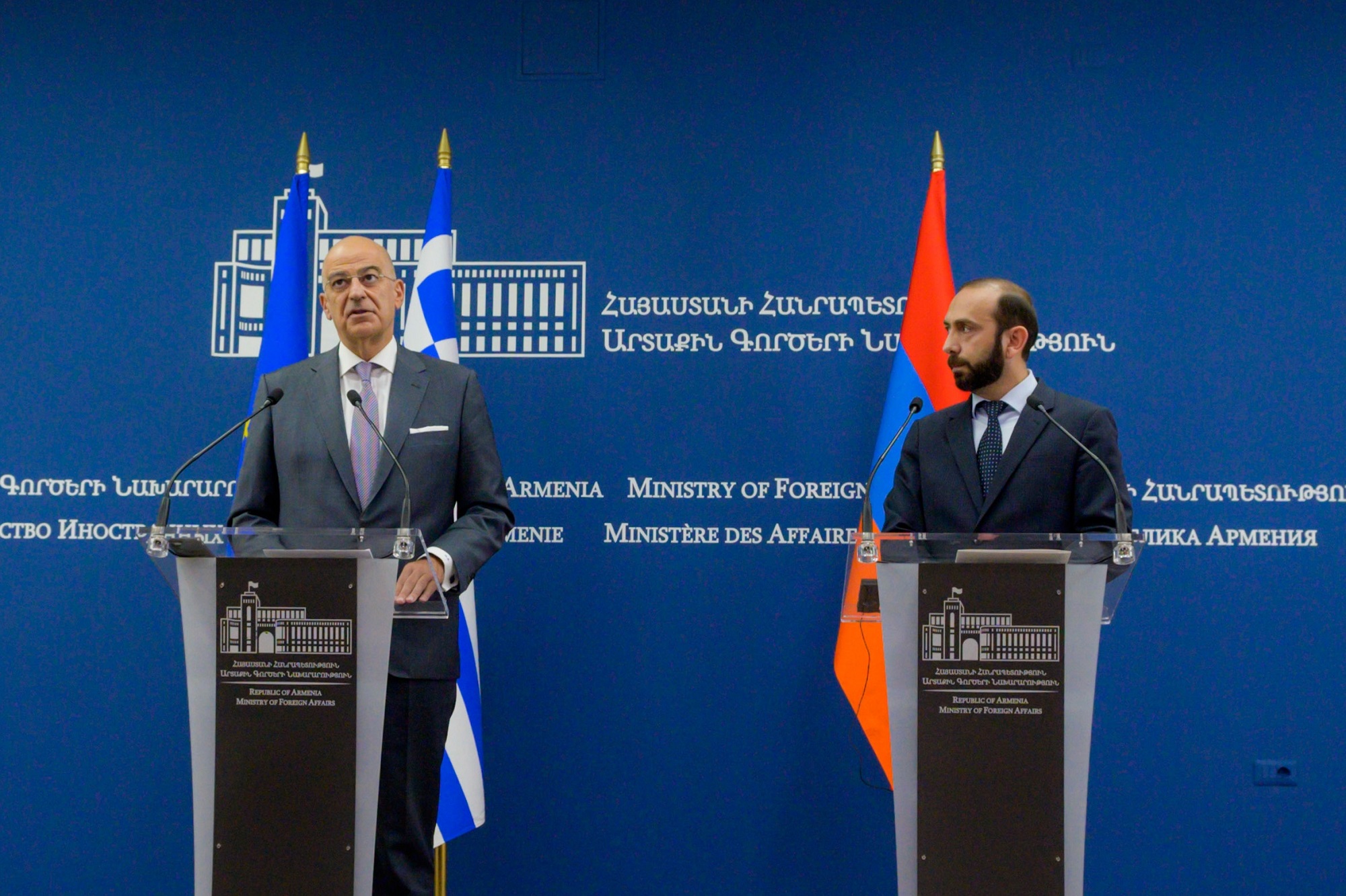Εστιάζοντας στις διμερείς σχέσεις, ο υπουργός Εξωτερικών εξέφρασε την αλληλεγγύη της Ελλάδας στην κυβέρνηση και τον λαό της Αρμενίας και σημείωσε πως «οι ιστορικές σχέσεις των δύο χωρών πάνε αιώνες πίσω». Όπως επισήμανε, σήμερα είχαν επίσης την ευκαιρία να αναθεωρήσουν τις εξαιρετικές διμερείς σχέσεις και προσέθεσε πως οι ιστορικές τραγωδίες μας ενώνουν. «Η Βουλή των Ελλήνων αναγνώρισε τη γενοκτονία των Αρμενίων το 1996. Η Βουλή των Αρμενίων αναγνώρισε τη γενοκτονία των Ελλήνων και των Ασσυρίων το 2015» ανέφερε.