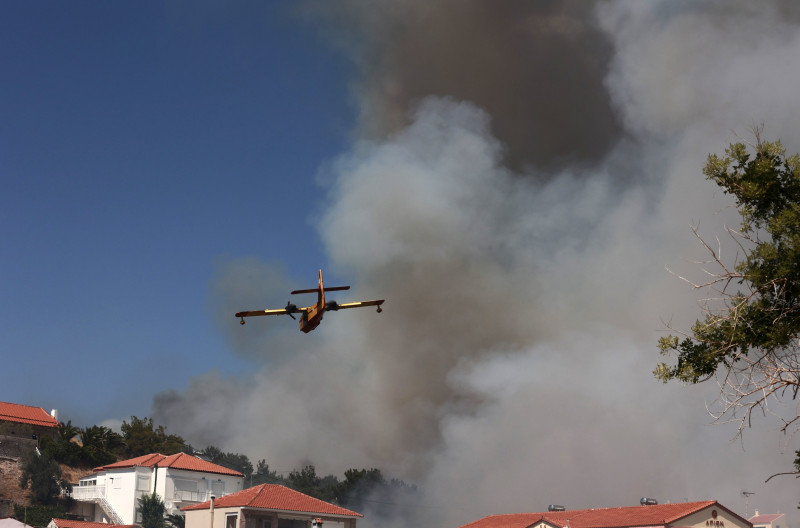 Τα εναέρια μέσα αντιμετώπιζαν από το πρωί δυσκολίες λόγω της θερμοκρασιακής αναστροφής και του έντονου καπνού. Αρχικά επιχειρούσαν μόνο ελικόπτερα, 2 Mi8, 2 AB214 και ένα Erickson. Αργά το μεσημέρι προστέθηκαν και τα αεροπλάνα: Ολέον επιχειρούν 5 αεροσκάφη και 7 ελικόπτερα.