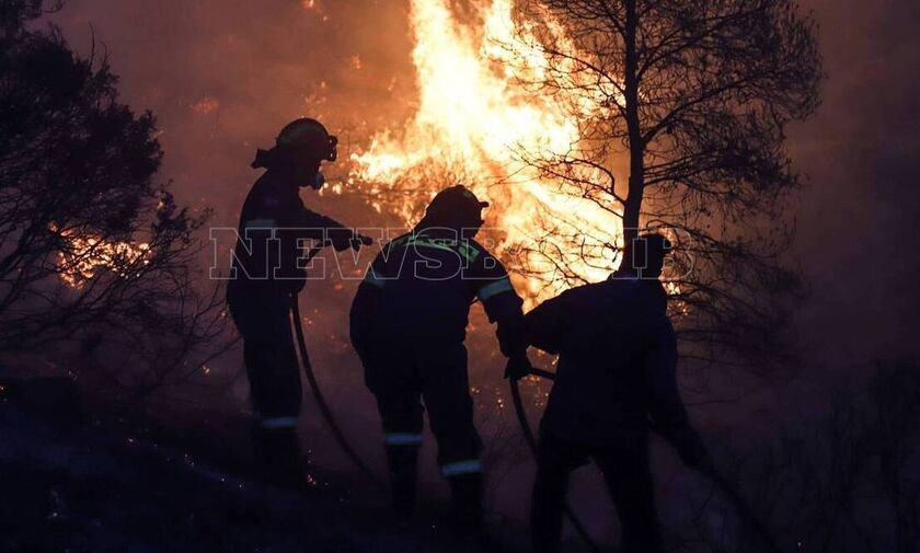 Μέχρι στιγμής, δεν απειλούνται κατοικημένες περιοχές, σύμφωνα με την Πυροσβεστική.