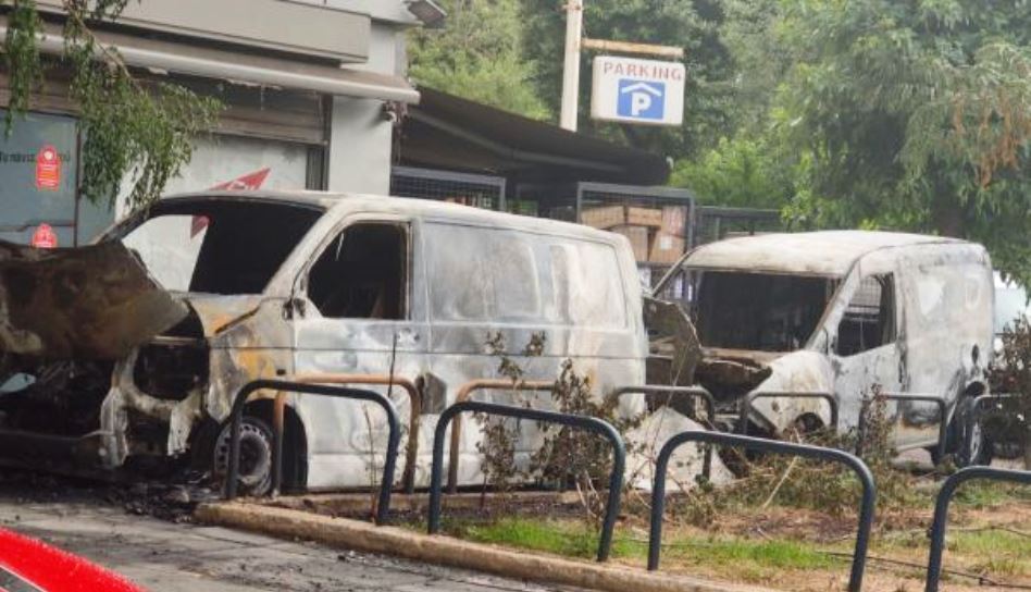 Εμπρηστική επίθεση σημειώθηκε τα ξημερώματα σε οχήματα εταιρείας ταχυμεταφορών στην περιοχή της Κυψέλης.