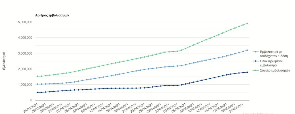 Το γράφημα δείχνει τη συνεχή ανοδική τάση των εμβολιασμών