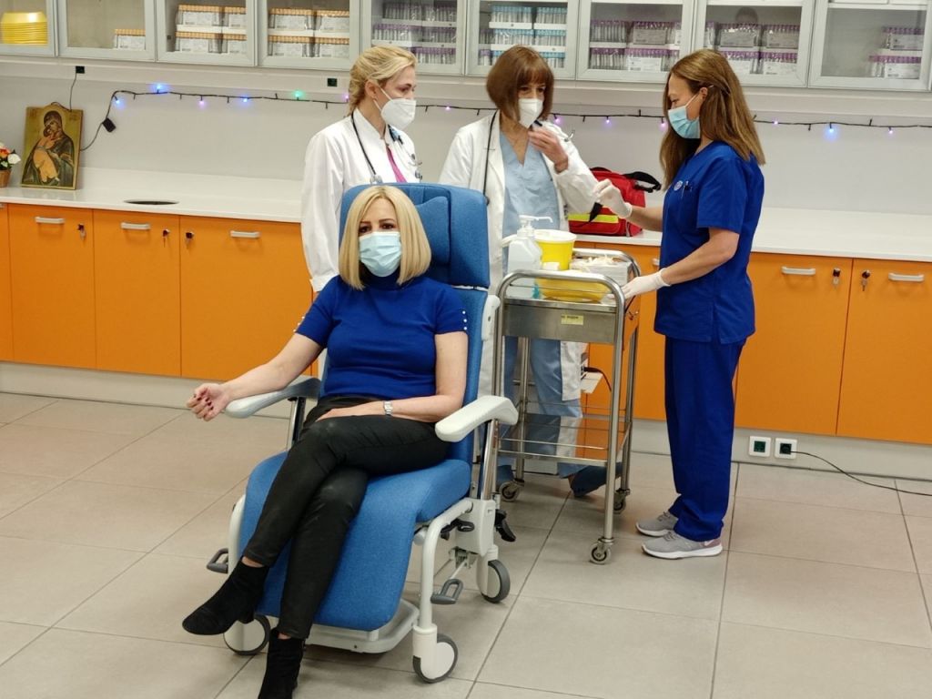 Με τον εμβολιασμό και της προέδρου του ΚΙΝΑΛ, Φώφης Γεννηματά σήμερα το πρωί στον Ευαγγελισμό, με το εμβόλιο κατά του COVID – 19, έκλεισε ο κύκλος των εμβολιασμών των πολιτικών αρχηγών. Την κ. Γεννηματά υποδέχτηκε στο Νοσοκομείο Ευαγγελισμός ο υπουργός Υγείας, Βασίλης Κικίλιας ο οποίος και την συνόδευσε στο χώρο όπου γίνονται οι εμβολιασμοί.