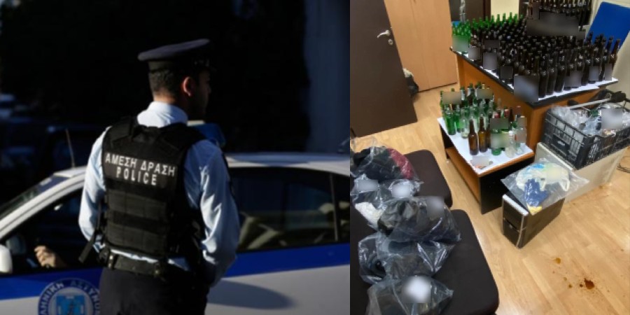 Από τις έρευνες που έγιναν τα βρέθηκαν και κατασχέθηκαν: 4 δοχεία με εύφλεκτο υγρό, πλήθος γυάλινων μπουκαλιών, 2 κοντάρια με πυρσούς προσαρτημένους σε αυτά, προσανάμματα φωτιάς και αναπτήρες, αντιασφυξιογόνα μάσκα, μάσκα προσώπου, γάντια και κράνος, μικροποσότητα κάνναβης, 3 κινητά τηλέφωνα και 2 κεντρικές μονάδες ηλεκτρονικού υπολογιστή.