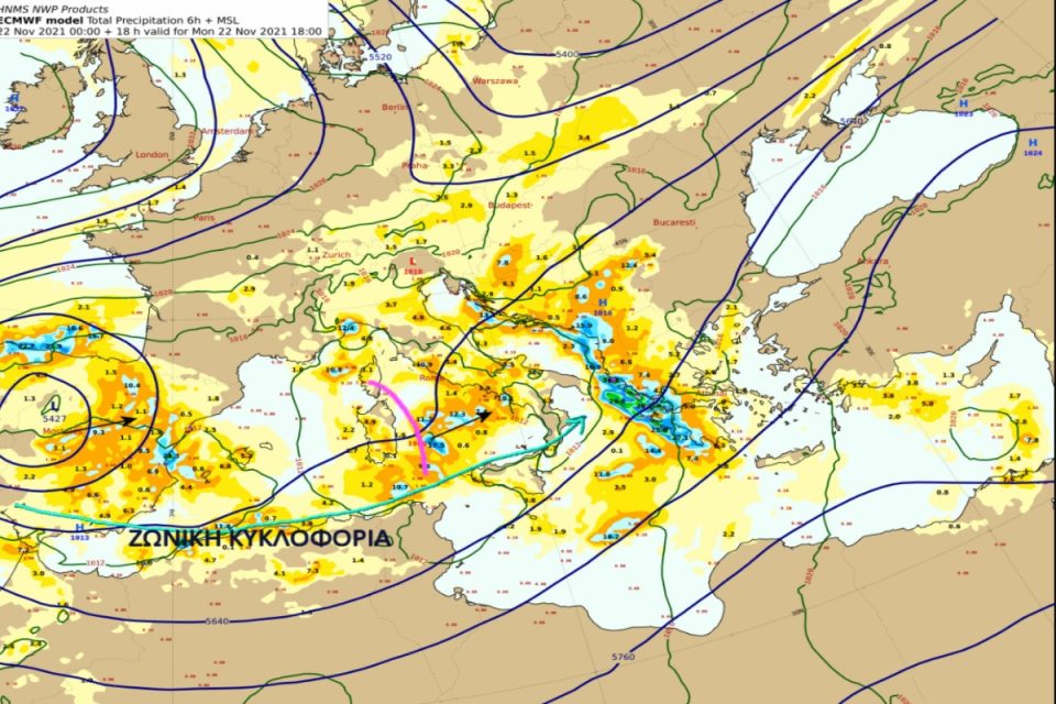 Από σήμερα Δευτέρα (22/11/2021) θα εκδηλωθούν ισχυρές βροχές και καταιγίδες που θα επηρεάσουν τα νησιά του Ιονίου και βαθμιαία την Ήπειρο, τη δυτική Στερεά Ελλάδα και τη δυτική Πελοπόννησο.