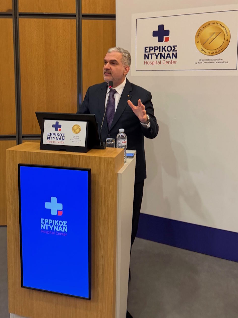 Προς την κατεύθυνση αυτή, σε ειδική εκδήλωση που πραγματοποιήθηκε στο Αμφιθέατρο του Ερρίκος Ντυνάν, ο διακεκριμένος γιατρός Shai Misan, εκ των πλέον ειδικευμένων παγκοσμίως στην εφαρμογή προγραμμάτων AI στα συστήματα υγείας, με έδρα στο Μιλάνο, παρουσίασε τις βασικές αλλαγές που έχουν επέλθει και τα πλεονεκτήματα που προσφέρει η χρήση της Τεχνητής Νοημοσύνης στο πεδίο της νοσοκομειακής φροντίδας. Τονίζοντας εμφατικά ότι «ο γιατρός διατηρεί πάντα τον τελικό έλεγχο», ο dr Misan επισήμανε ότι οι αλλαγές μέσω του ΑΙ μεταμορφώνουν κάθε λειτουργικό επίπεδο στην υγειονομική περίθαλψη, καθώς οδηγούν σε αύξηση της διαγνωστικής ακρίβειας και ανοίγουν νέους δρόμους στην παροχή εξατομικευμένης φροντίδας, εξασφαλίζοντας παράλληλα μείωση των διοικητικών και γραφειοκρατικών βαρών.