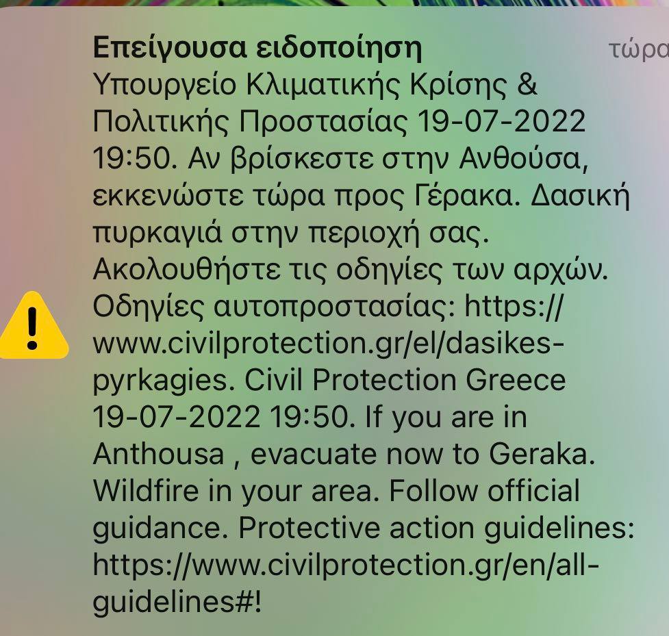 Τόνισε ακόμα ότι: «Η φωτιά είναι έξω από το Ντράφι, δεν απειλεί κατοικημένες περιοχές. Παρακαλούμε τους συμπολίτες μας να ακούνε ακούνε τις εκκλήσεις των αρχών».
