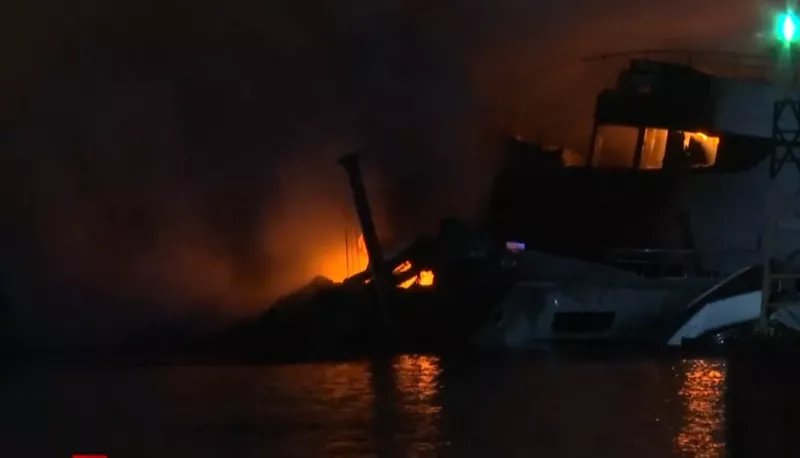 Δυνάμεις της πυροσβεστικής επιχειρούν στο σημείο από ξήράς και με πλωτό σκάφος προκειμένου να θέσουν τη φωτιά υπό έλεγχο, ενώ στο σημείο βρίσκονται επίσης σκάφος του λιμενικού και ένα ρυμουλκό.