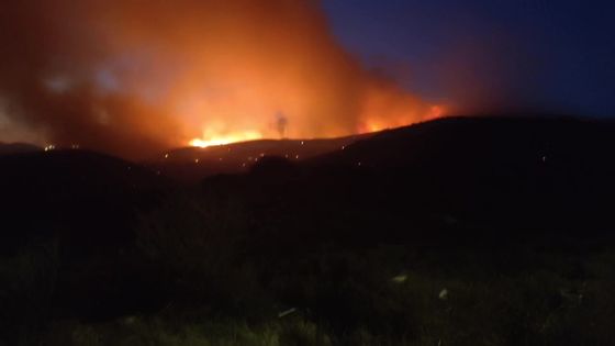 Σύμφωνα με τις πληροφορίες της πυροσβεστικής ο αέρας στο βουνό κάνει συνέχεια στροβιλισμούς και γυρνάει κατευθύνσεις στην πυρκαγιά συνεχώς.