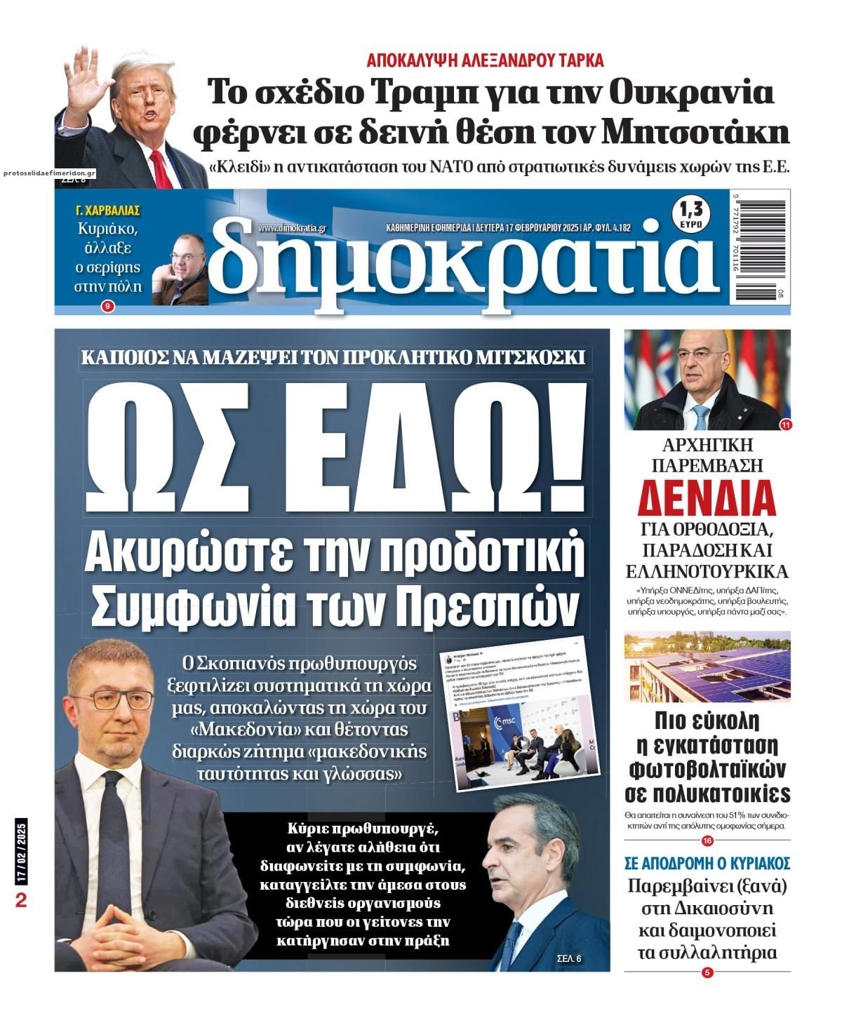 Οι εφημερίδες, σήμερα Δευτέρα 17 Φεβρουαρίου