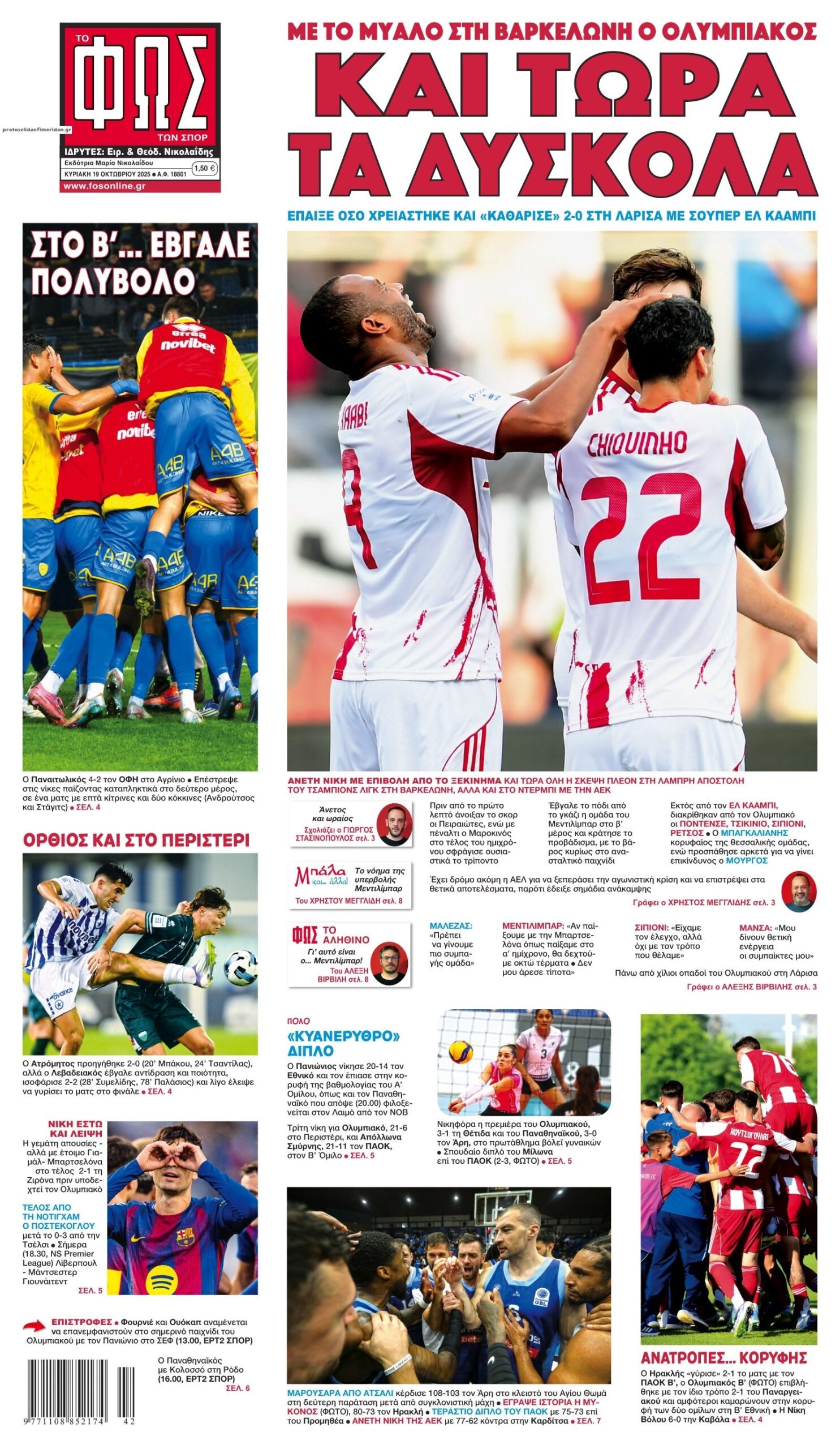 Οι εφημερίδες, σήμερα Κυριακή 19 Οκτωβρίου