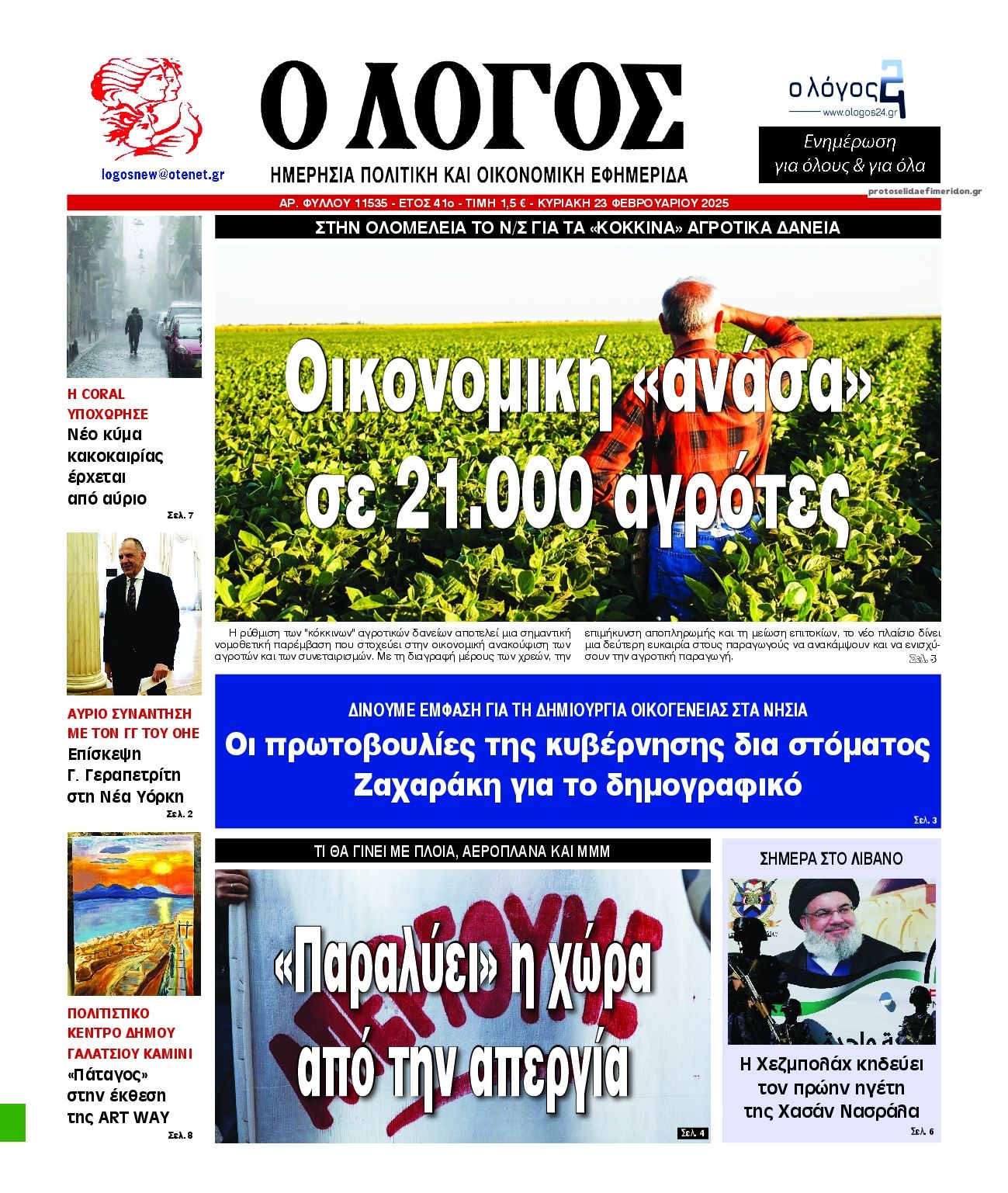 Οι εφημερίδες, σήμερα Κυριακή 23 Φεβρουαρίου