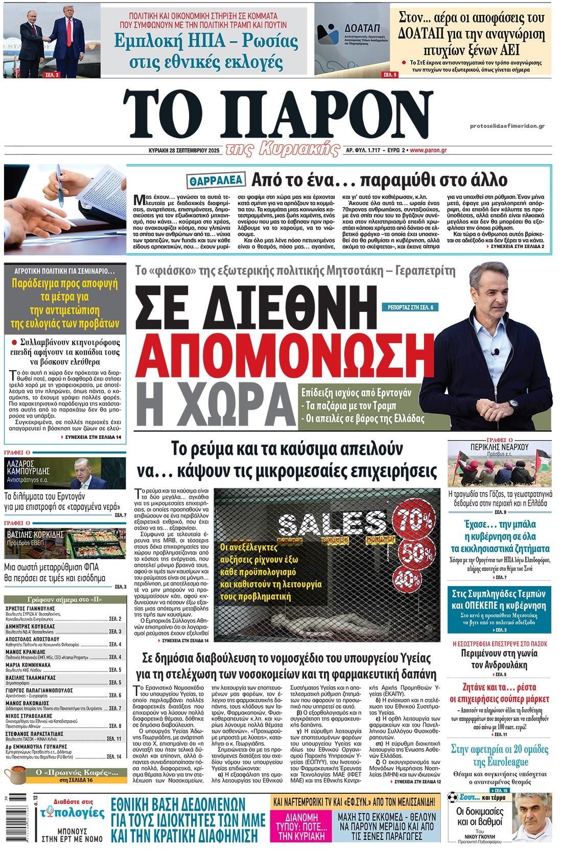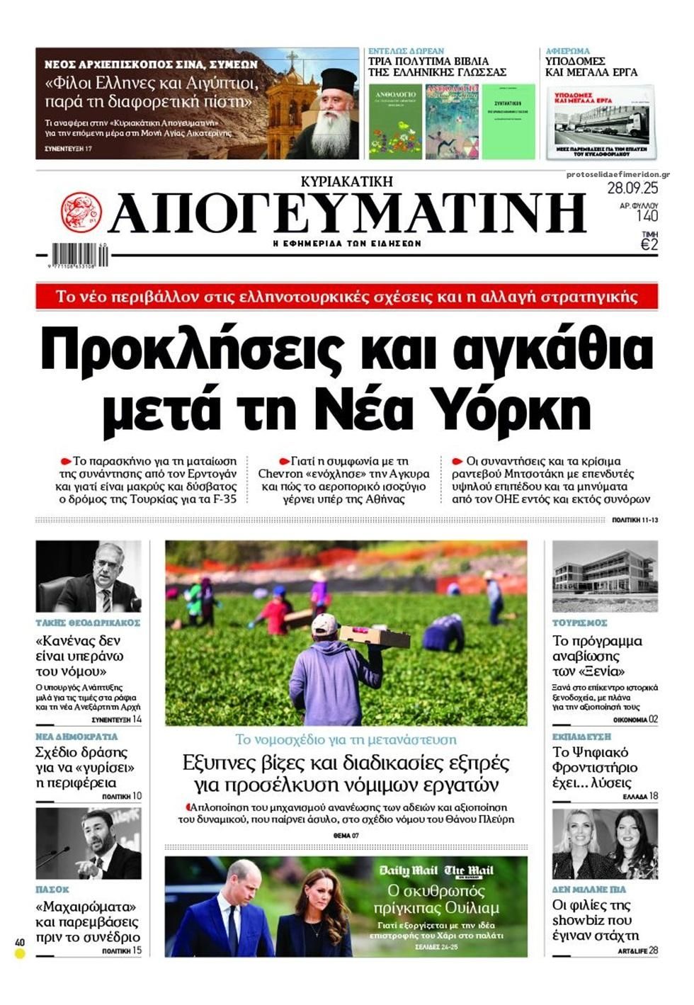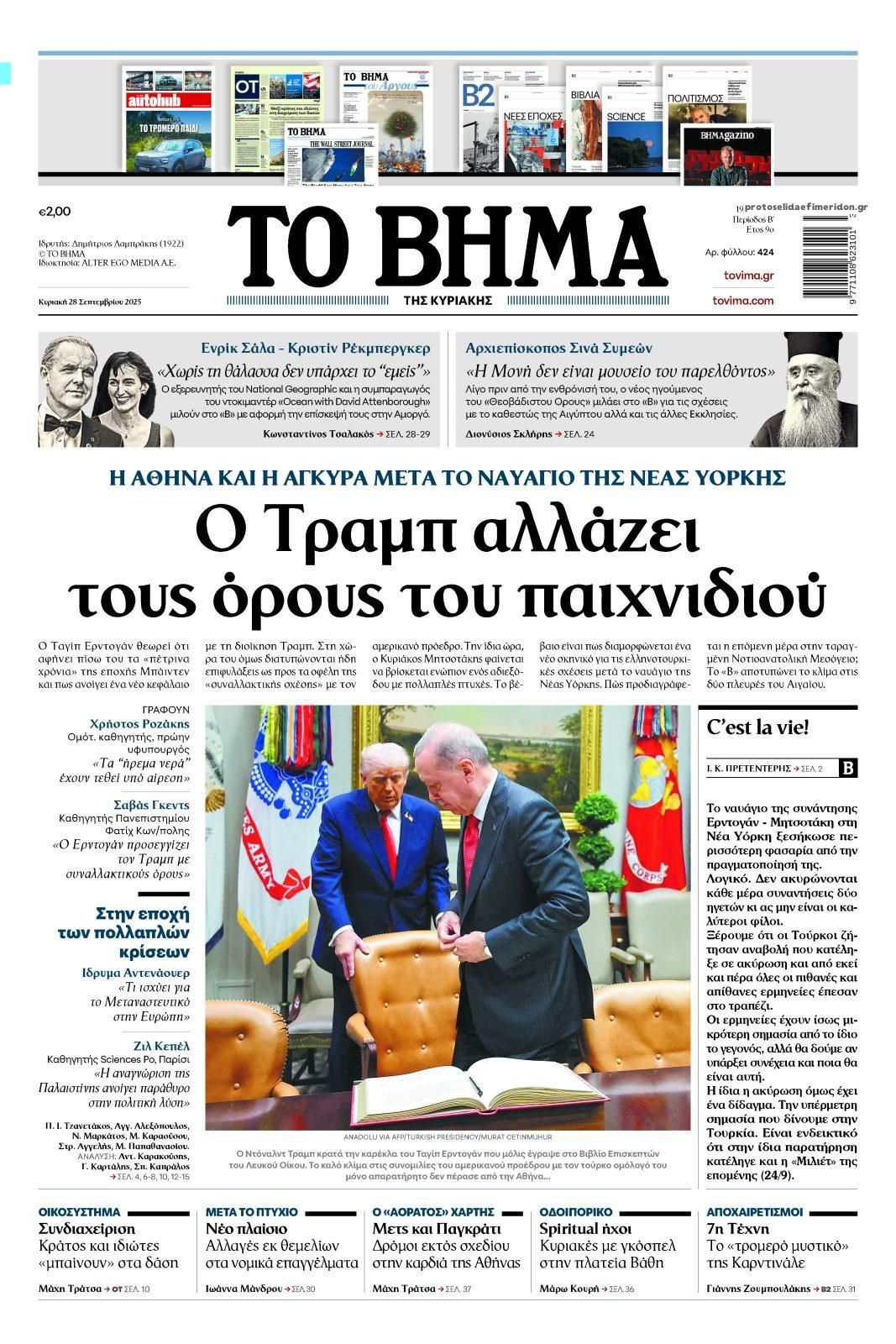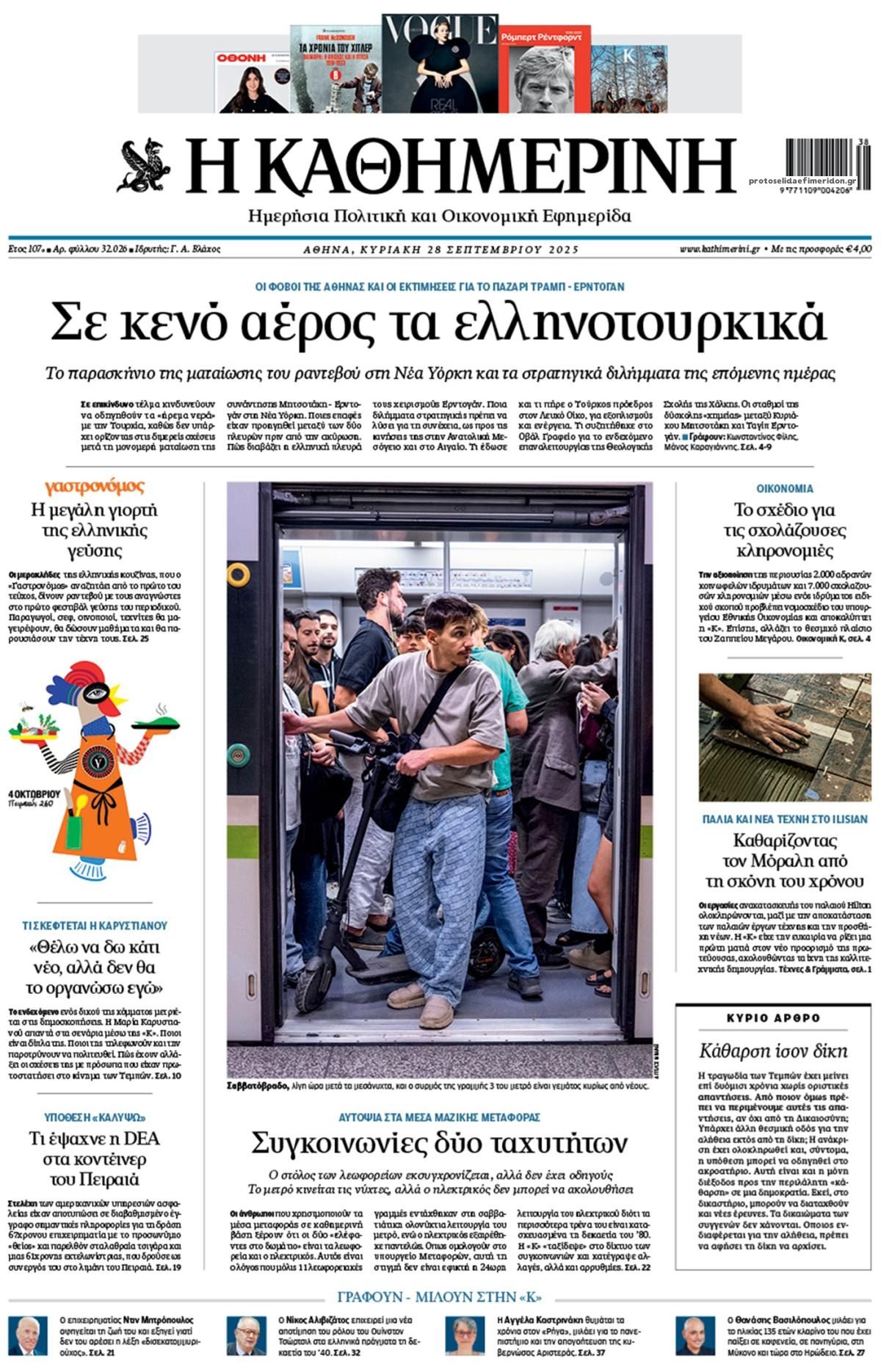 Οι εφημερίδες, σήμερα Κυριακή 28 Σεπτεμβρίου