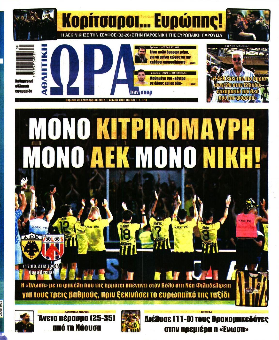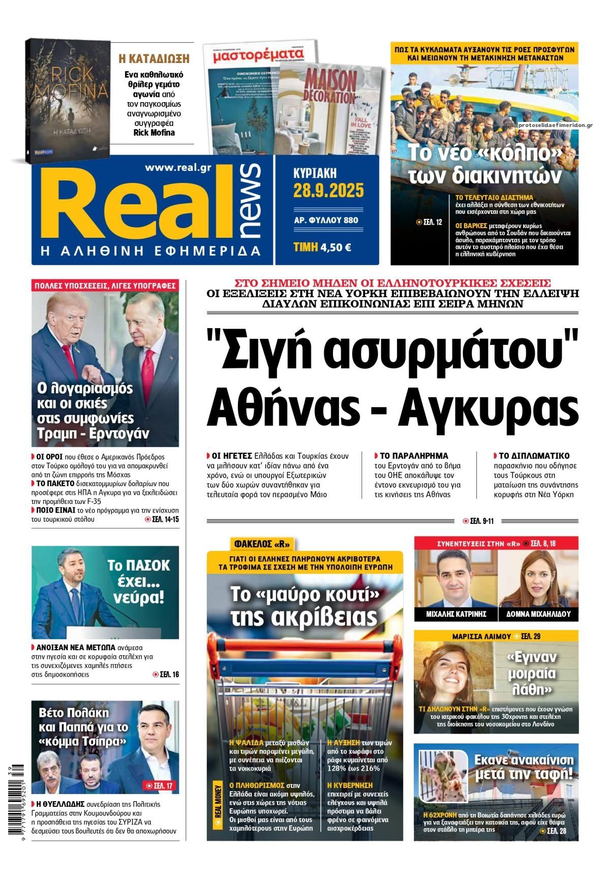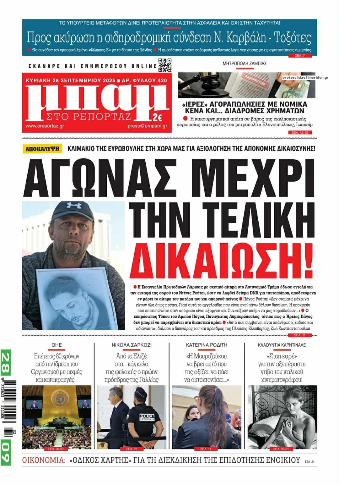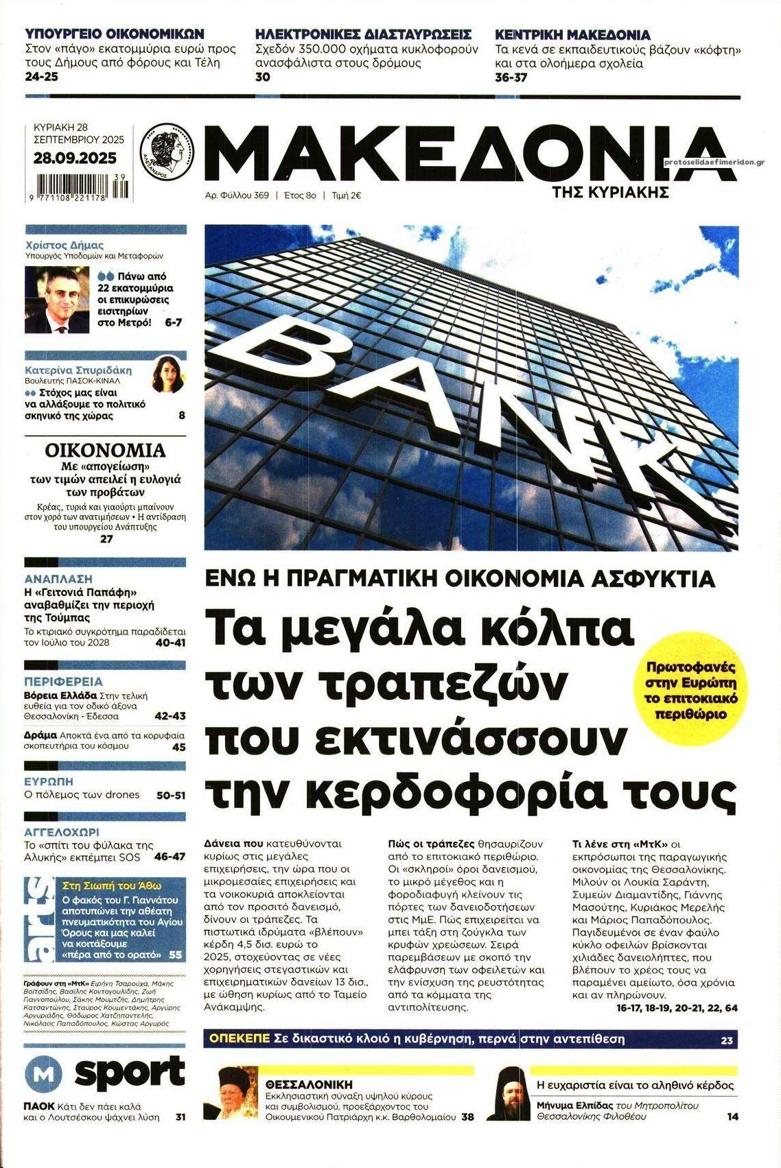 Οι εφημερίδες, σήμερα Κυριακή 28 Σεπτεμβρίου