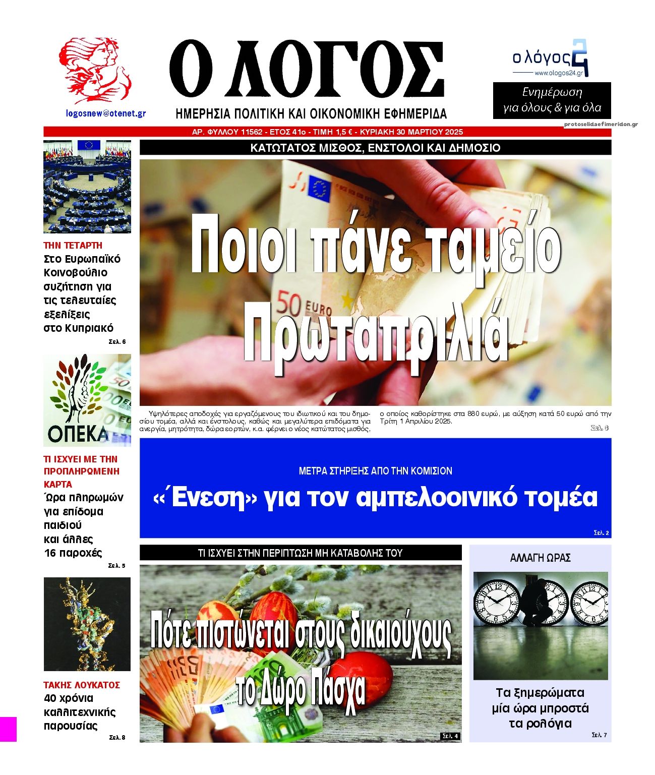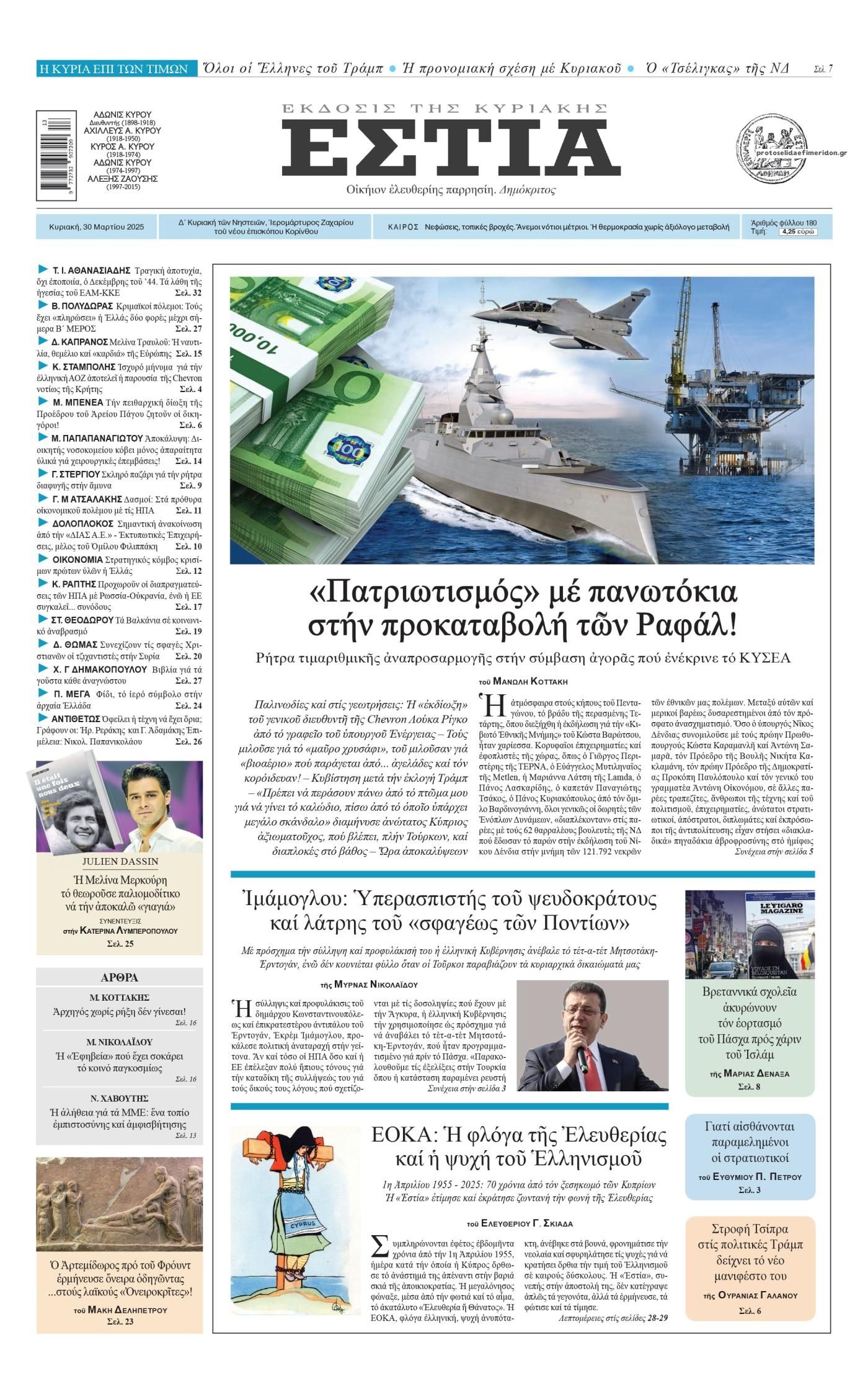 Oι εφημερίδες, σήμερα Κυριακή 30 Μαρτίου