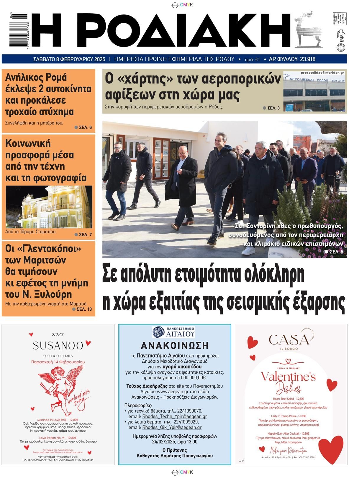 Οι εφημερίδες, σήμερα Σάββατο 8 Φεβρουαρίου