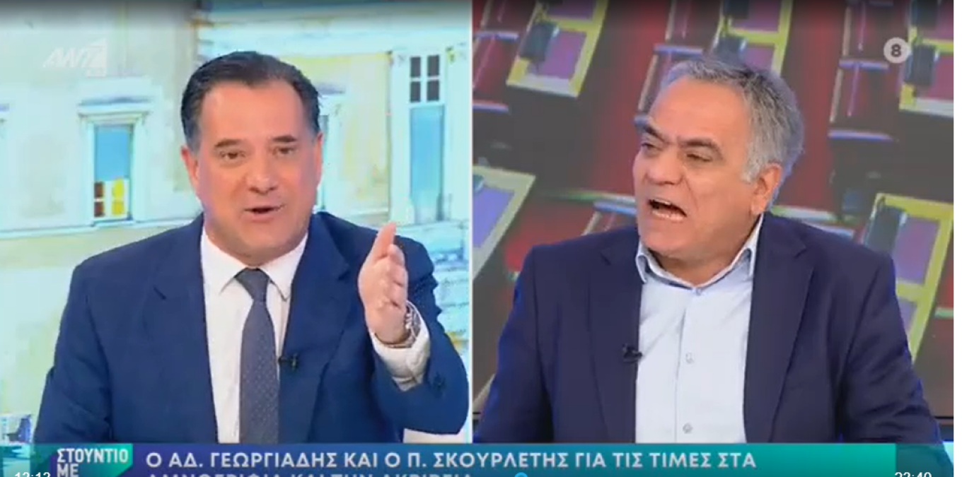 Καλεσμένοι στον ΑΝΤ1 ήταν ο Υπουργός Ανάπτυξης και Επενδύσεων, Άδωνις Γεωργιάδης και ο Κοινοβουλευτικός Εκπρόσωπος του ΣΥΡΙΖΑ, Πάνος Σκουρλέτης και τα πνεύματα οξύνθηκαν όταν η κουβέντα πήγε στο ζήτημα του τομεάρχη Διαφάνειας του ΣΥΡΙΖΑ, Γιάννη Ραγκούση. Το όνομά του έχει εμπλακεί τελευταία σε ένα ακόμα ζήτημα. Αυτό με την Ουκρανή καθαρίστρια που εργάζονταν ανασφάλιστη στο ξενοδοχείο της πρώην συζύγου του και η ίδια άφησε να εννοηθεί ότι με την εμπλοκή του Ραγκούση το πρόστιμο των 10.000 ευρώ διαγράφηκε.