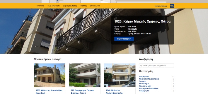 Άμεση ήταν η κίνηση της Τράπεζας Πειραιώς στη διαδικασία των ηλεκτρονικών δημοπρασιών ακινήτων. Όπως αναφέρει σε ανακοίνωσή της η Τράπεζα στο  properties4sale.gr, το νέο διαδικτυακό της ιστότοπο, η Τράπεζα θα παρουσιάζει ιδιόκτητα ακίνητα, κατοικίες και επαγγελματικά, και σε συγκεκριμένες ημερομηνίες θα διενεργεί ανοιχτές δημοπρασίες παράλληλα με την δυνατότητα άμεσης αγοράς.