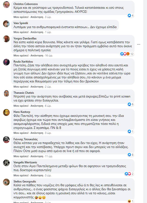 Bέβαια, μετά από λίγο την ανάρτηση την απέκρυψε και από δημόσια την έκανε μεταξύ των φίλων του όπως λέει: