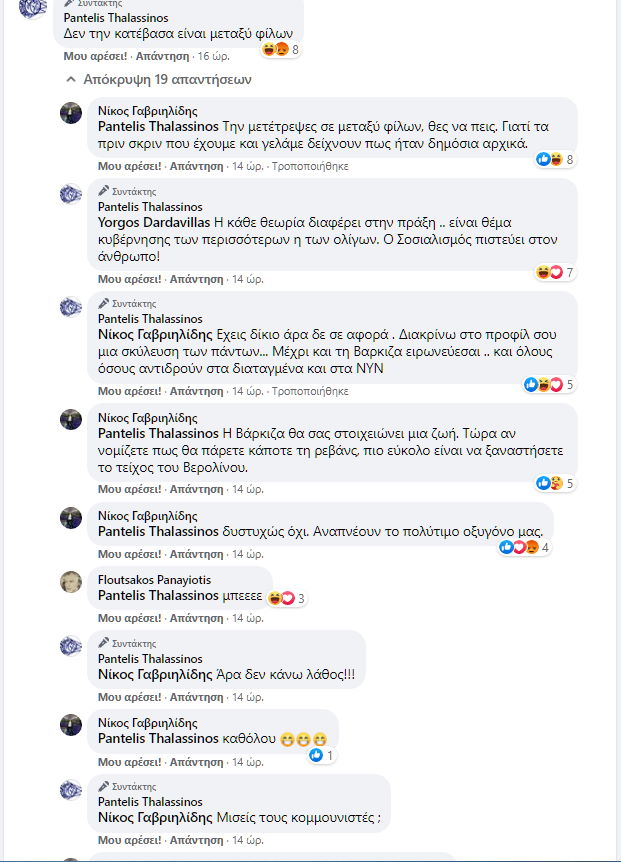 Φυσικά, οι χρήστες του Twitter, δεν άφησαν την ανάρτηση αυτή να περάσει απαρατήρητη και «δίκασαν» τον Παντελή Θαλασσινό για όσα επέλεξε να γράψει, τη μέρα, μάλιστα, που τέθηκε σε εφαρμογή το Σχέδιο «Ελευθερία».