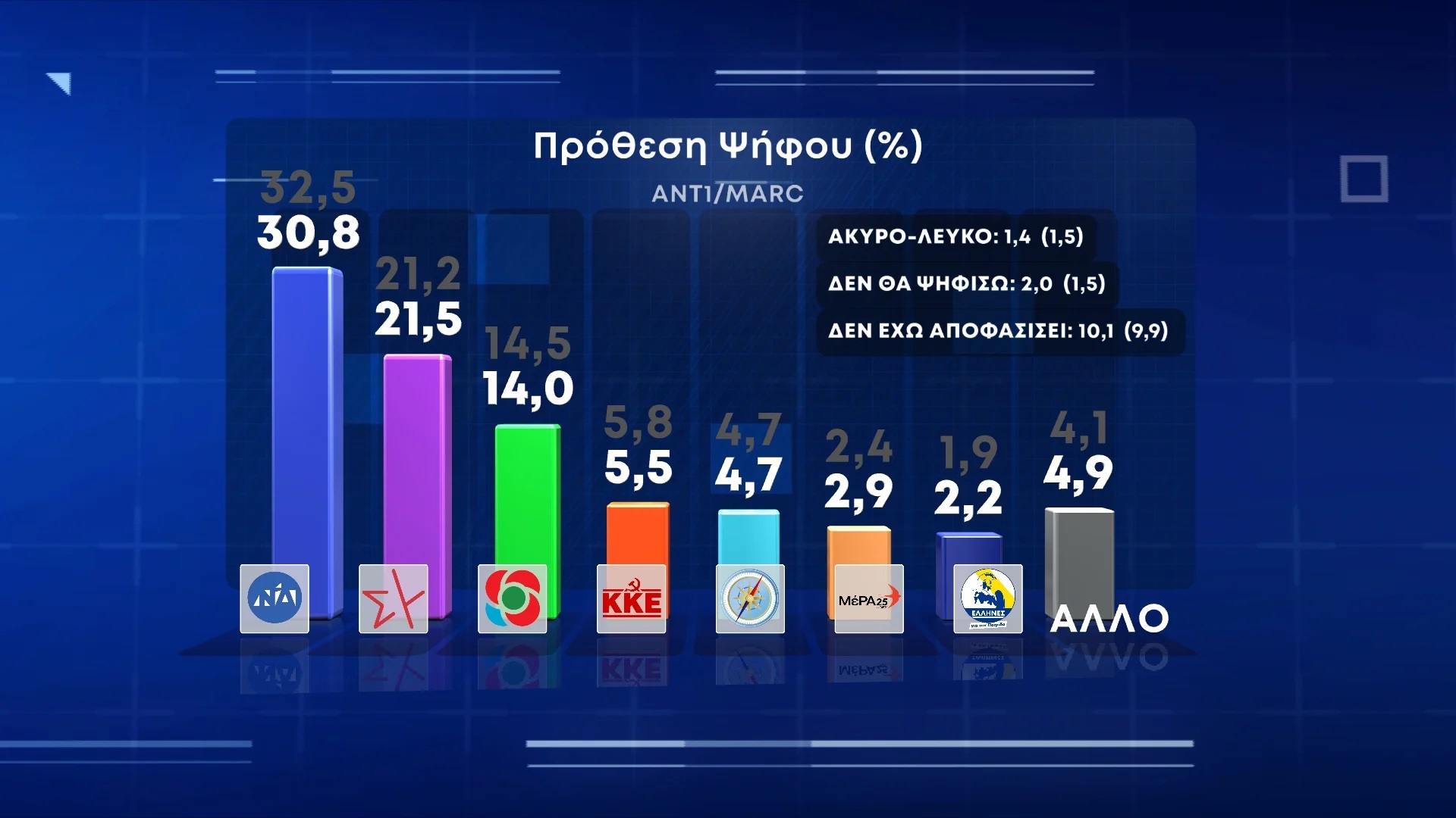 Tα στοιχεία του Α’ μέρους της μεγάλης μηνιαίας δημοσκόπησης της MARC, παρουσιάστηκαν στο κεντρικό δελτίο ειδήσεων του ΑΝΤ1.