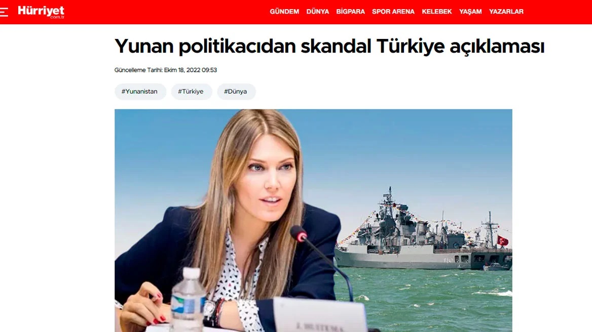 Τα παραπάνω ήταν αρκετά για να προκαλέσουν την αντίδραση της Τουρκίας και να κάνουν την Εύα Καϊλή… πρώτο θέμα σήμερα, σε αρκετά τουρκικά ΜΜΕ, με κάποια από αυτά να τιτλοφορούν τα θέματά τους με ιδιαίτερα προκλητικό τρόπο.