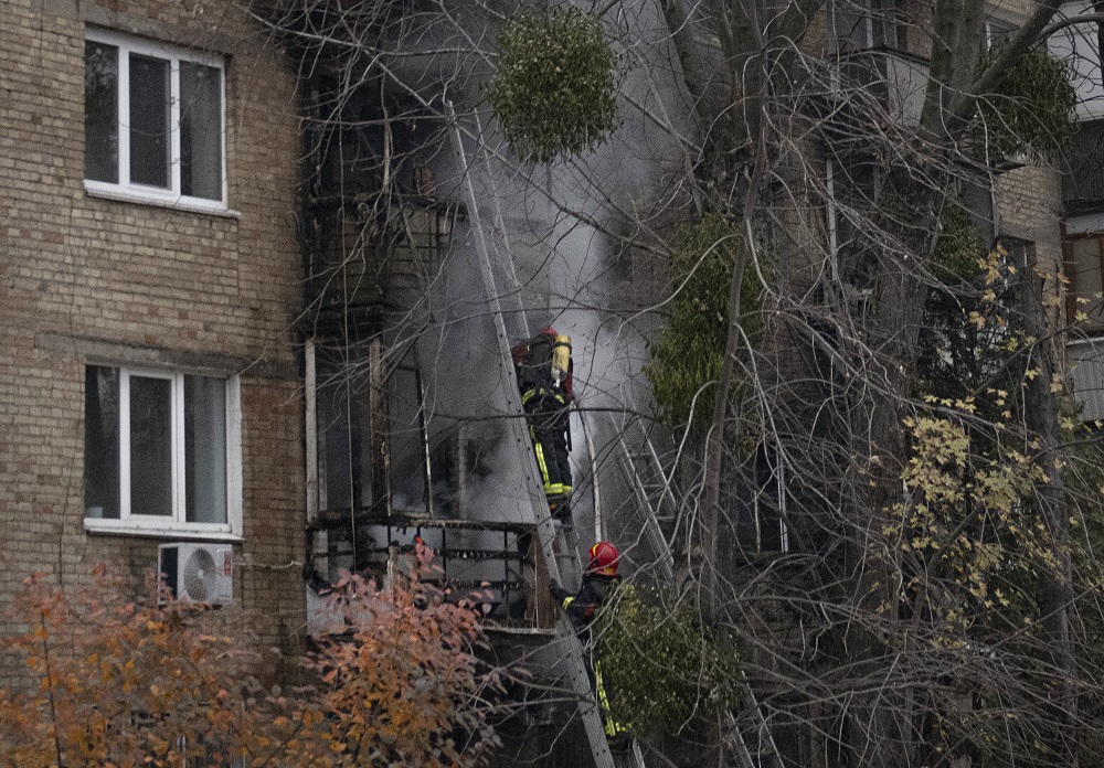 Πλάνα που αναρτήθηκαν στα μέσα κοινωνικής δικτύωσης από τον αναπληρωτή επικεφαλής του γραφείου του Ουκρανού προέδρου Βολοντίμιρ Ζελένσκι έδειχναν φλόγες να βγαίνουν από μια μικρή πολυκατοικία.