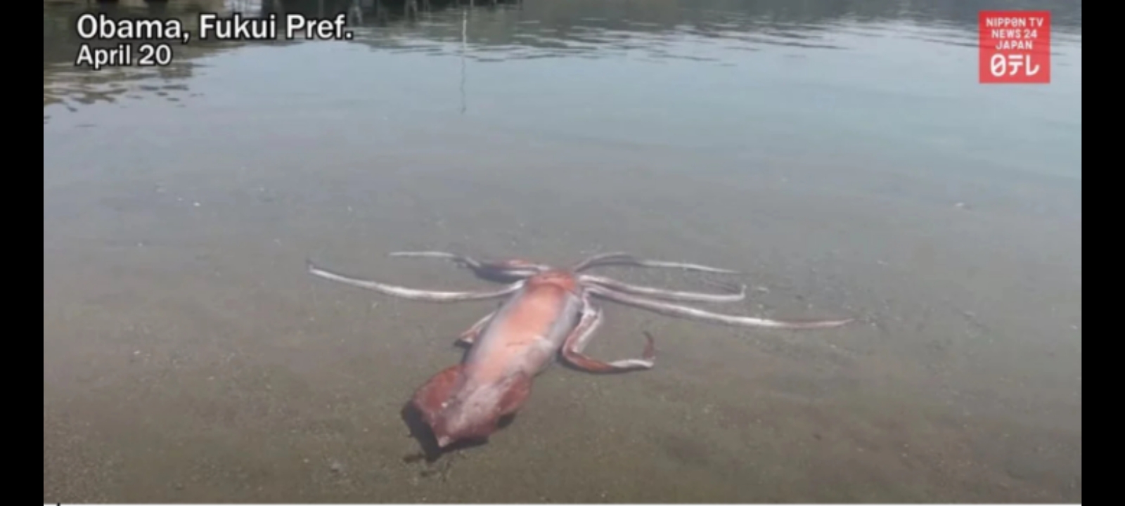 Ένα γιγάντιο καλαμάρι μήκους περίπου 3 μέτρων βρέθηκε αποκλεισμένο σε μια παραλία της Ιαπωνίας στις 20 Απριλίου, κάτι που οι τοπικές αρχές είπαν ότι ήταν σπάνιο περιστατικό.