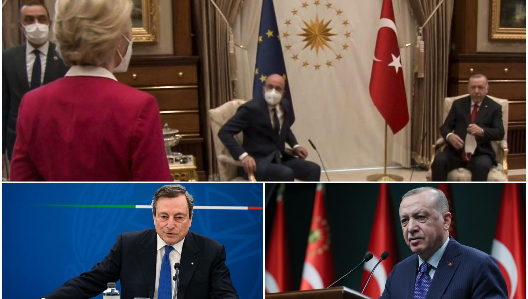 Την ίδια στιγμή ο πρωθυπουργός της Ιταλίας Μάριο Ντράγκι αποκάλεσε τον Τούρκο πρόεδρο Ερντογάν για πρώτη φορά ευθέως ως «δικτάτορα», λέγοντας ότι αισθάνεται ντροπή για αυτό που αναγκάστηκε να υποστεί η πρόεδρος της Ευρωπαϊκής Επιτροπής.
