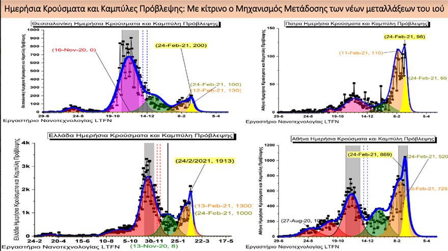 «Οι μηχανισμοί μετάδοσης που οφείλονται στις νέες μεταλλάξεις του κορωνοϊού είναι εξαιρετικά γρήγοροι, όπως δείχνει η υπερ-μετάδοση και η εξέλιξη του αριθμού των κρουσμάτων που προήλθαν από αυτές μέσα σε ελάχιστες μέρες τόσο στα αστικά κέντρα όπως την Αθήνα, την Θεσσαλονίκη και την Πάτρα, όσο και πανελλαδικά, και προβλέπεται να αυξηθούν ταχύτατα τις επόμενες μέρες», προειδοποιεί ο καθηγητής Στέργιος Λογοθετίδης, Διευθυντής του Εργαστηρίου Νανοτεχνολογίας του Αριστοτελείου Πανεπιστημίου Θεσσαλονίκης (ΑΠΘ).