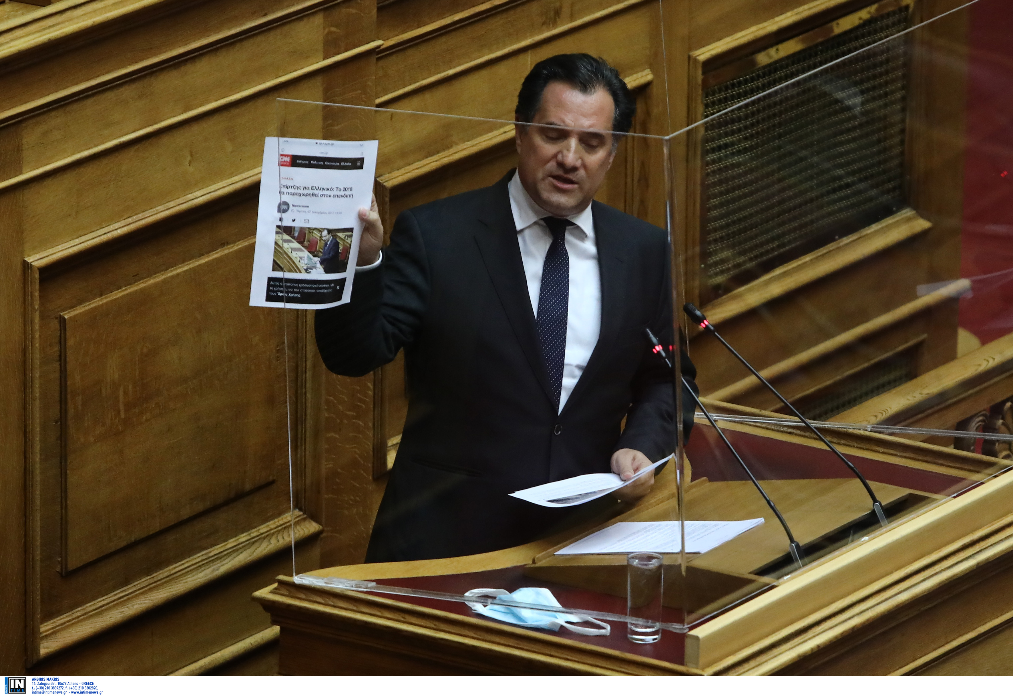 Αυτό που έριξε λάδι στη φωτιά ήταν η κίνηση του κ. Γεωργιάδη να καταθέσει στα πρακτικά φωτογραφία στην οποία ο κ. Τσίπρας στεκόταν μπροστά από πανό με τίτλο “Το ΕΛΛΗΝΙΚΟ ΔΕΝ ΠΩΛΕΙΤΑΙ”. Με τον κ. Γεωργιάδη να έχει αποχωρήσει από τη Βουλή η αξιωματική αντιπολίτευση αντέδρασε έντονα κατηγορώντας τον Υπουργό πως κατέθεσε στα πρακτικά αλλοιωμένη και fake φωτογραφία.
