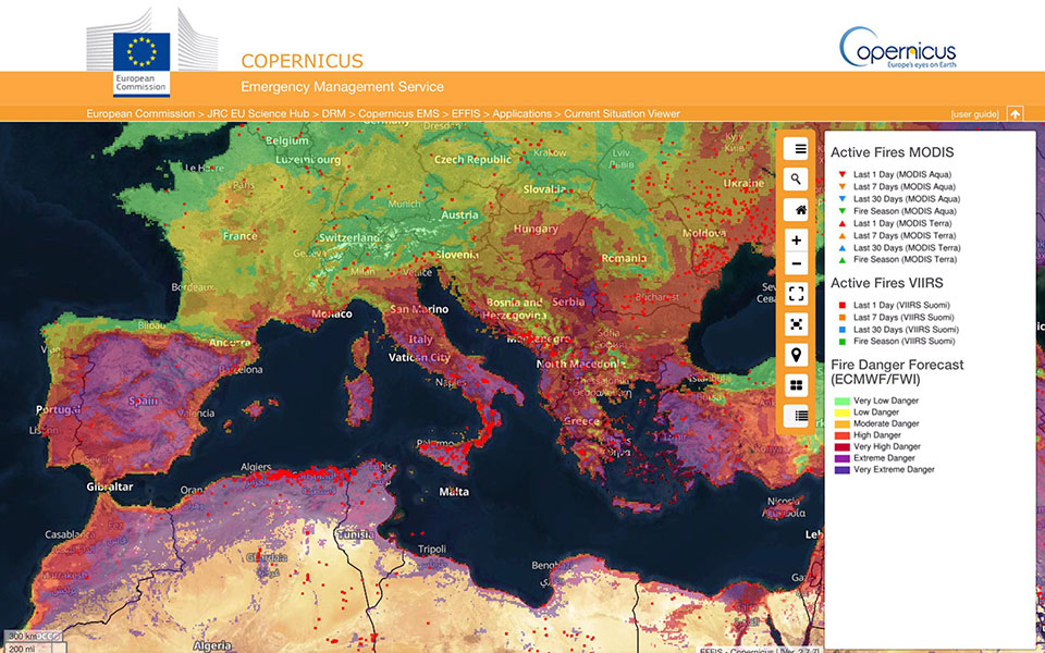 Μικρή βελτίωση της εικόνας στην Ελλάδα σε ό,τι αφορά τον κίνδυνο πυρκαγιών, «βλέπει» το ευρωπαϊκό δορυφορικό σύστημα «Κοπέρνικος».