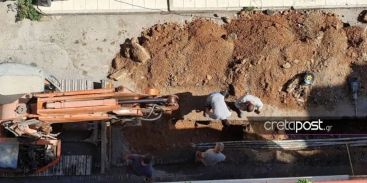 Σύμφωνα με το cretapost.gr, όλα συνέβησαν λίγο πριν τις 11:00 το πρωί όταν συνεργείο της Δημοτική Επιχείρηση Ύδρευσης-Αποχέτευσης Ηρακλείου στην προσπάθεια του να ανοίξει κανάλι από όπου θα περνούσαν δίκτυα ύδρευσης έσκαβαν στην οδό Ντεντιδάκηδων (παράλληλη της Καλοκαιρινού), στην περιοχή της Αγίας Τριάδας.