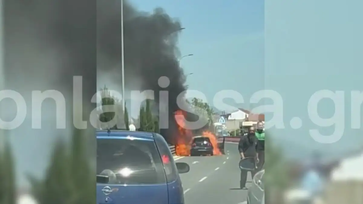 Το τροχαίο έγινε στη λ. Καραμανλή στη Λάρισα, γύρω στη 1 το μεσημέρι. Σε βίντεο που έφερε στο φως το onlarissa.gr, φαίνεται το αυτοκίνητο να έχει τυλιχθεί στις φλόγες ενώ πλήθος κόσμου να παρακολουθεί τη φωτιά.