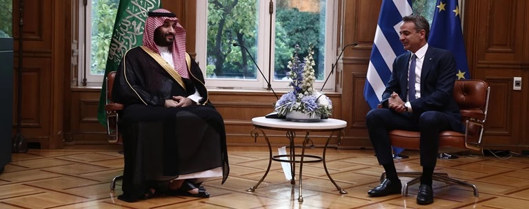 Ο Πρωθυπουργός Κυριάκος Μητσοτάκης συναντήθηκε, σήμερα, στο Μέγαρο Μαξίμου, με τον Πρίγκιπα-Διάδοχο του Θρόνου της Σαουδικής Αραβίας Mohammed bin Salman bin Abdulaziz Al Saud, ο οποίος πραγματοποιεί την πρώτη του επίσημη επίσκεψη στην Ελλάδα.