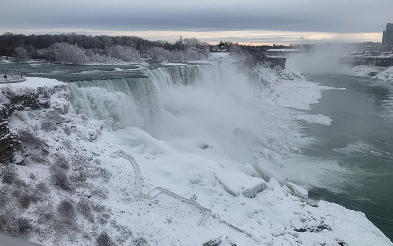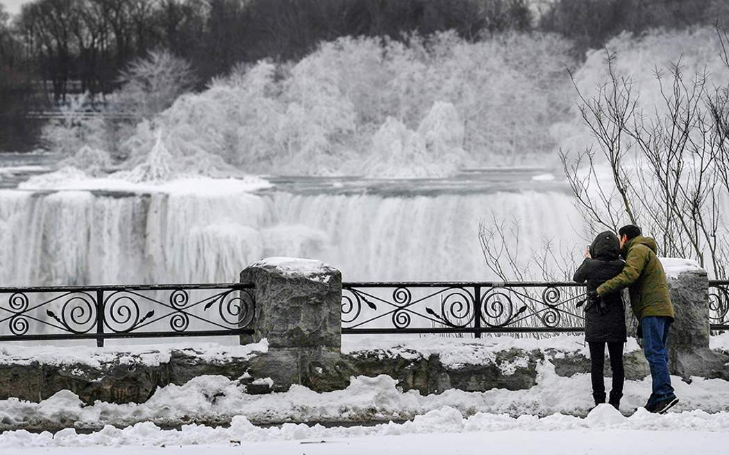 Ο παγωμένος Νιαγάρας με το χιονισμένο σκηνικό εντυπωσιάζει όσους τυχερούς τον επισκέπτονται και δεν σταματούν να βγάζουν φωτογραφίες με φόντο το παραμυθένιο σκηνικό.