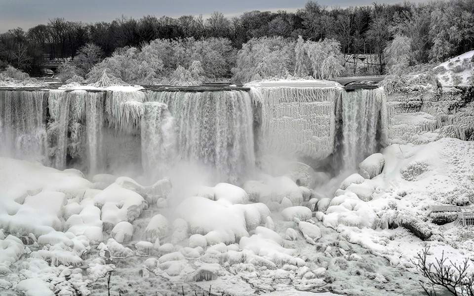 Η σφοδρή χιονοθύελλα και οι πολικές θερμοκρασίες που πλήττουν τις τελευταίες μέρες πολλές πολιτείες των ΗΠΑ, κατάφεραν να  παγώσουν και ένα από τα διασημότερα τουριστικά σημεία της Αμερικής και του Καναδά, τους καταρράκτες του Νιαγάρα.