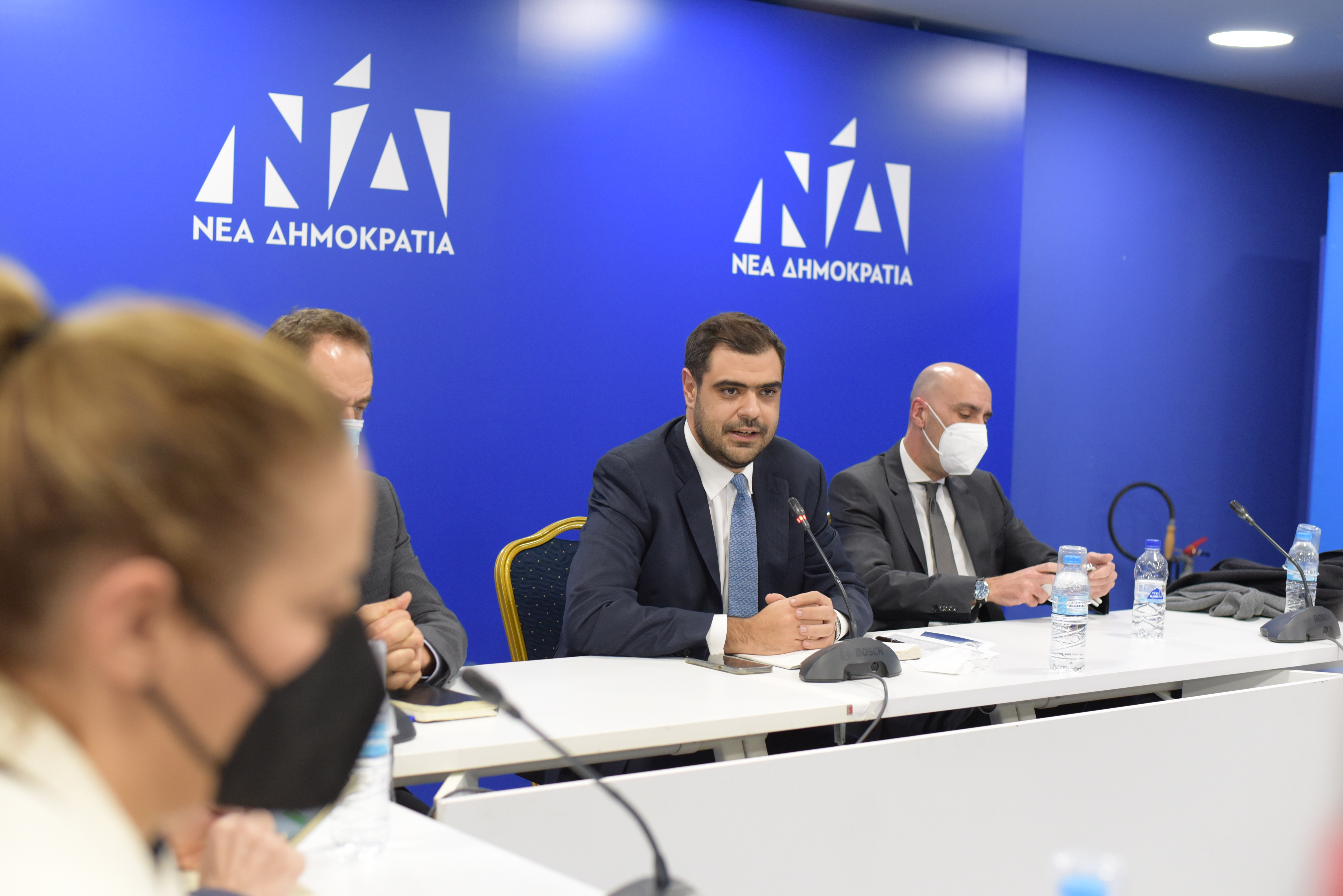 Πραγματοποιήθηκε σήμερα η πρώτη συνεδρίαση του Διαγραμματειακού Οργάνου της Νέας Δημοκρατίας μετά την εκλογή του Παύλου Μαρινάκη ως νέου Γραμματέα της Πολιτικής Επιτροπής της Νέας Δημοκρατίας, παρουσία του Γενικού Διευθυντή της Νέας Δημοκρατίας Γιάννη Μπρατάκου, του Γραμματέα Οργανωτικού Στέλιου Κονταδάκη, του Εκπροσώπου Τύπου Τάσου Γαϊτάνη, της Εκπροσώπου Τύπου για τα Περιφερειακά Μέσα Έλενας Σώκου, του Διευθυντή του Γραφείου Τύπου Νίκου Ρωμανού, του Συμβούλου του Πρωθυπουργού Θανάση Νέζη και των Επικεφαλής όλων των Γραμματειών της Νέας Δημοκρατίας.