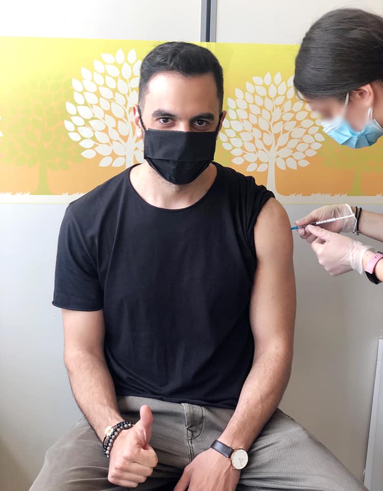 Το στιγμιότυπο μοιράστηκε ο ιδιος ο κ. Χριστοδουλακης στα μέσα κοινωνικής δικτύωσης σημειώνοντας πως «με τη σειρά μας και εμείς. Φυσικά με AstraZeneca! #emvolio».
