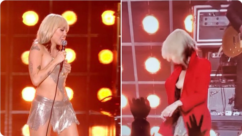Δευτερόλεπτα αργότερα επέστρεψε στη σκηνή φορώντας ένα κόκκινο μπλέιζερ και λέγοντας από μικροφώνου χαριτολογώντας «σίγουρα όλοι τώρα με παρακολουθείτε».