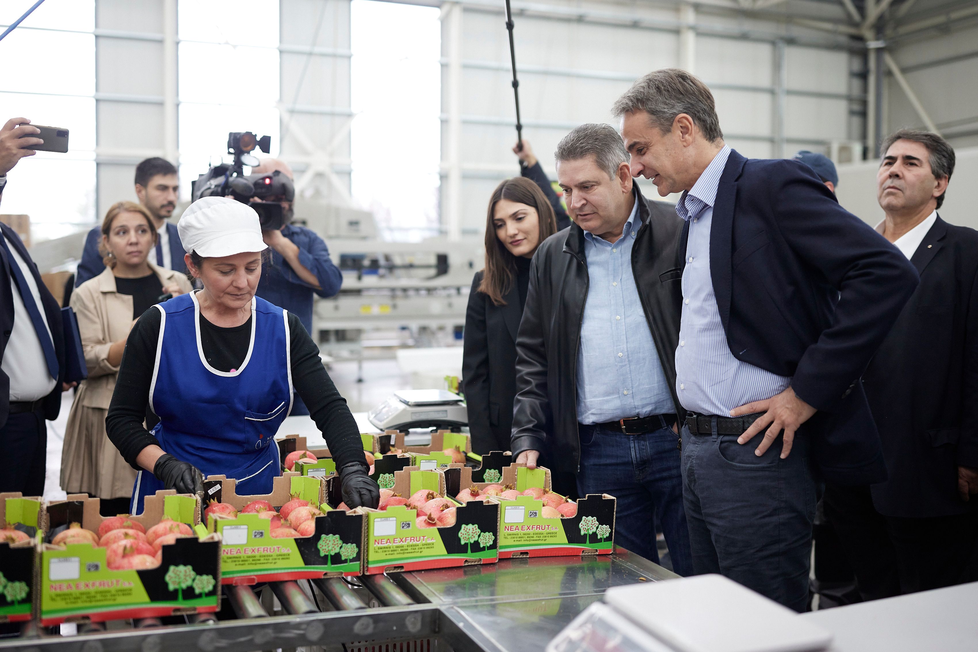 Ο Κυριάκος Μητσοτάκης περιηγήθηκε στις εγκαταστάσεις και παρακολούθησε τη διαδικασία διαλογής και συσκευασίας προϊόντων.