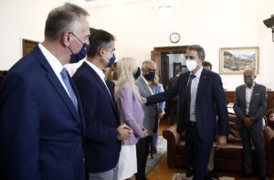Τον πρωθυπουργό συνοδεύουν ακόμη και παρίστανται στις συναντήσεις οι Υπουργοί Υποδομών και Μεταφορών Κώστας Καραμανλής και Πολιτισμού Λίνα Μενδώνη καθώς και οι Υφυπουργοί Χωροταξίας και Αστικού Περιβάλλοντος κ. Νίκος Ταγαράς και Υποδομών κ. Γιώργος Καραγιάννης.