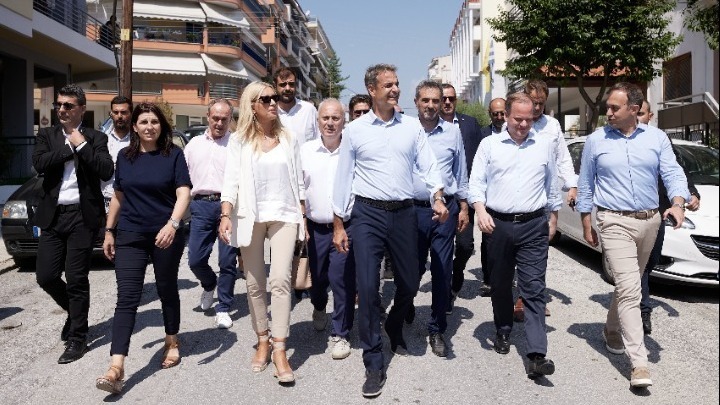 Τον πρωθυπουργό στη βόλτα συνόδευαν ο υπουργός Υποδομών και Μεταφορών Κώστας Αχιλλέα Καραμανλής και οι βουλευτές Φωτεινή Αραμπατζή, Τάσος Χατζηβασιλείου και Θεόφιλος Λεονταρίδης και ο γραμματέας της ΠΕ της ΝΔ Παύλος Μαρινάκης.