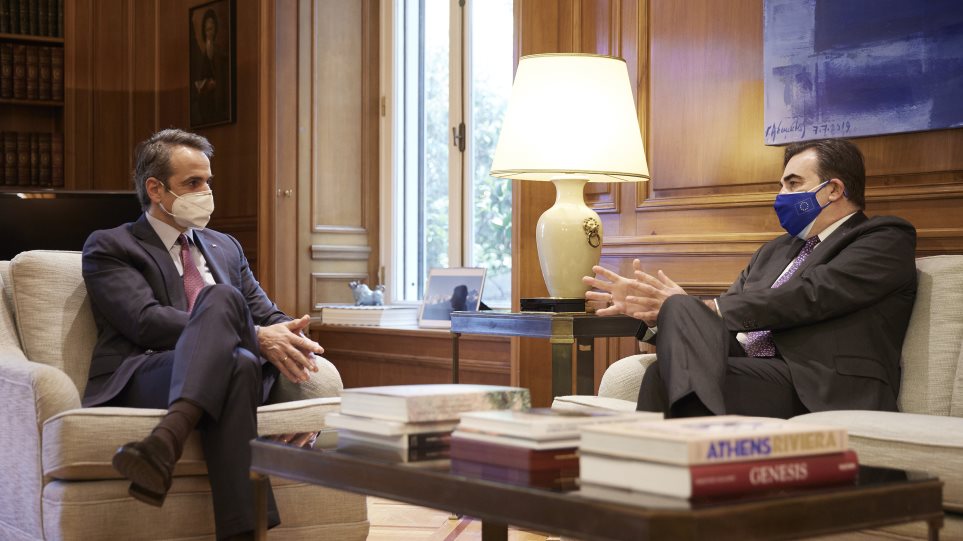 Το θέμα του εμβολιασμού των πολιτών, το πιστοποιητικό εμβολιασμού και το νέο Σύμφωνο Μετανάστευσης και Ασύλου βρέθηκαν στο επίκεντρο της συνάντησης του πρωθυπουργού Κυριάκου Μητσοτάκη με τον Αντιπρόεδρο της Ευρωπαϊκής Επιτροπής και Επίτροπο για την Προώθηση του Ευρωπαϊκού Τρόπου Ζωής Μαργαρίτη Σχοινά, στο Μέγαρο Μαξίμου.