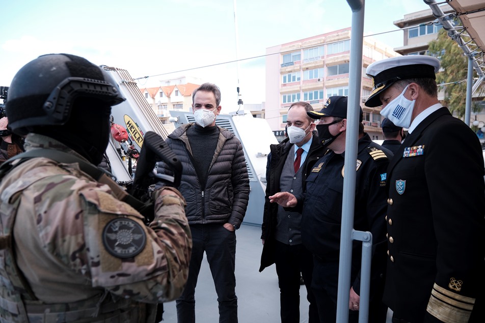 “Δεν θα μπορούσα να σκεφτώ πιο συμβολική κίνηση, σήμερα 31 Δεκεμβρίου, καθώς ετοιμαζόμαστε να υποδεχτούμε το νέο χρόνο, από το να βρεθώ εδώ στα σύνορά μας, στη Μυτιλήνη, μαζί με το Λιμενικό, μαζί με το Ναυτικό, μαζί με το Στρατό μας, την Αεροπορία μας, τους ένστολους για να σας πω ένα πολύ μεγάλο ευχαριστώ, να ευχηθώ καλή χρονιά με υγεία, ασφάλεια”, τόνισε ο πρωθυπουργός και συμπλήρωσε: “Η έμπρακτη δέσμευσή μας να στηρίξουμε τις Ένοπλες Δυνάμεις αποδεικνύεται πιστεύω μέσα από τις πολιτικές επιλογές αυτής της κυβέρνησης είτε συζητάμε για σημαντικά καινούργια εξοπλιστικά προγράμματα, είτε συζητάμε για τη στελέχωση των Ενόπλων Δυνάμεων με έμψυχο δυναμικο όπως έχουμε δεσμευτεί. Σε αυτό το δρόμο θα προχωρήσουμε και χαιρόμαστε που πάντα με το εθνόσημο ψηλά μας κάνετε υπερήφανους».