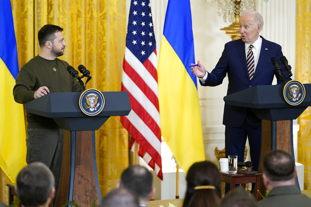 Κατ’ ιδίαν συνάντηση στο Λευκό Οίκο είχαν ο πρόεδρος των ΗΠΑ Τζο Μπάιντεν με τον Ουκρανό ομόλογό του Βολοντίμιρ Ζελένσκι, ενώ λίγο αργότερα παραχώρησαν από κοινού συνέντευξη Τύπου, κατά τη διάρκεια της οποίας ανακοινώθηκε επισήμως το νέο πακέτο βοήθειας προς την Ουκρανία.