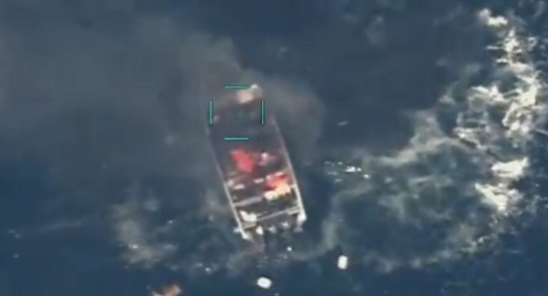 Στην ανάρτηση περιλαμβανόταν και βίντεο διάρκειας 22 δευτερολέπτων, στο οποίο διακρίνεται ένα πλοιάριο στη θάλασσα να πλήττεται από πυρά και να εκρήγνυται.