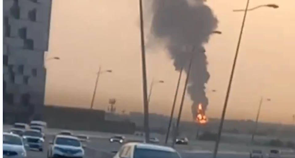 ⚡️– Fuel depots near Terminal 3 inside Dubai International Airport, UAE, is still on fire after a drone attack. pic.twitter.com/4XFJgN2UVT